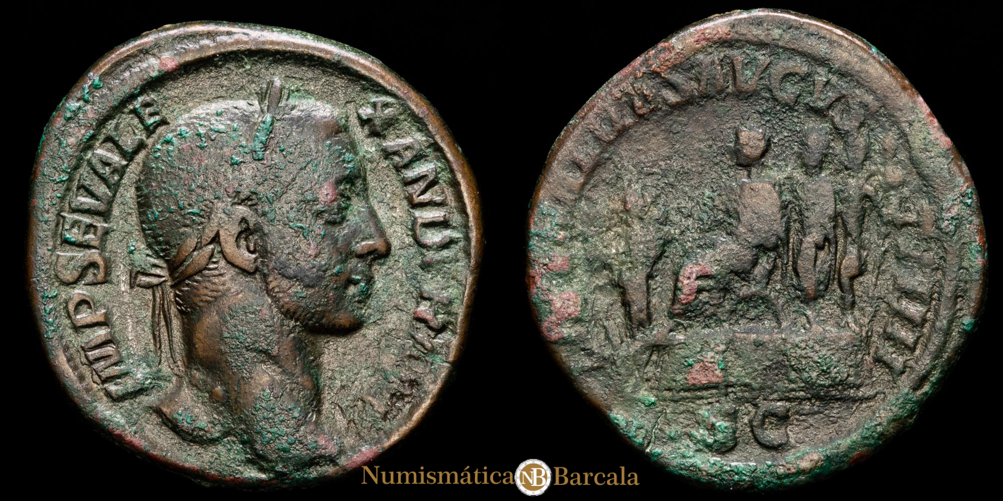 Alejandro Severo. Sesterico de bronce (19,71 g.). 222-235 A.D. Reverso muy raro. RIC-IV 578. MBC.