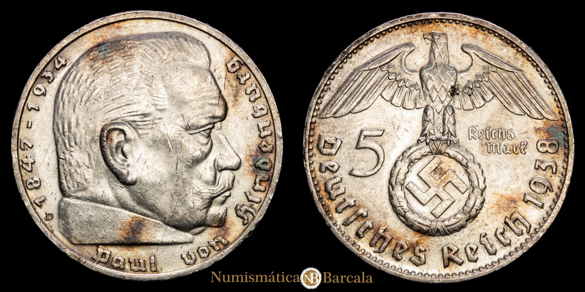 Alemania – Nazi. 5 Mark (13,83 g.). 1938. XF