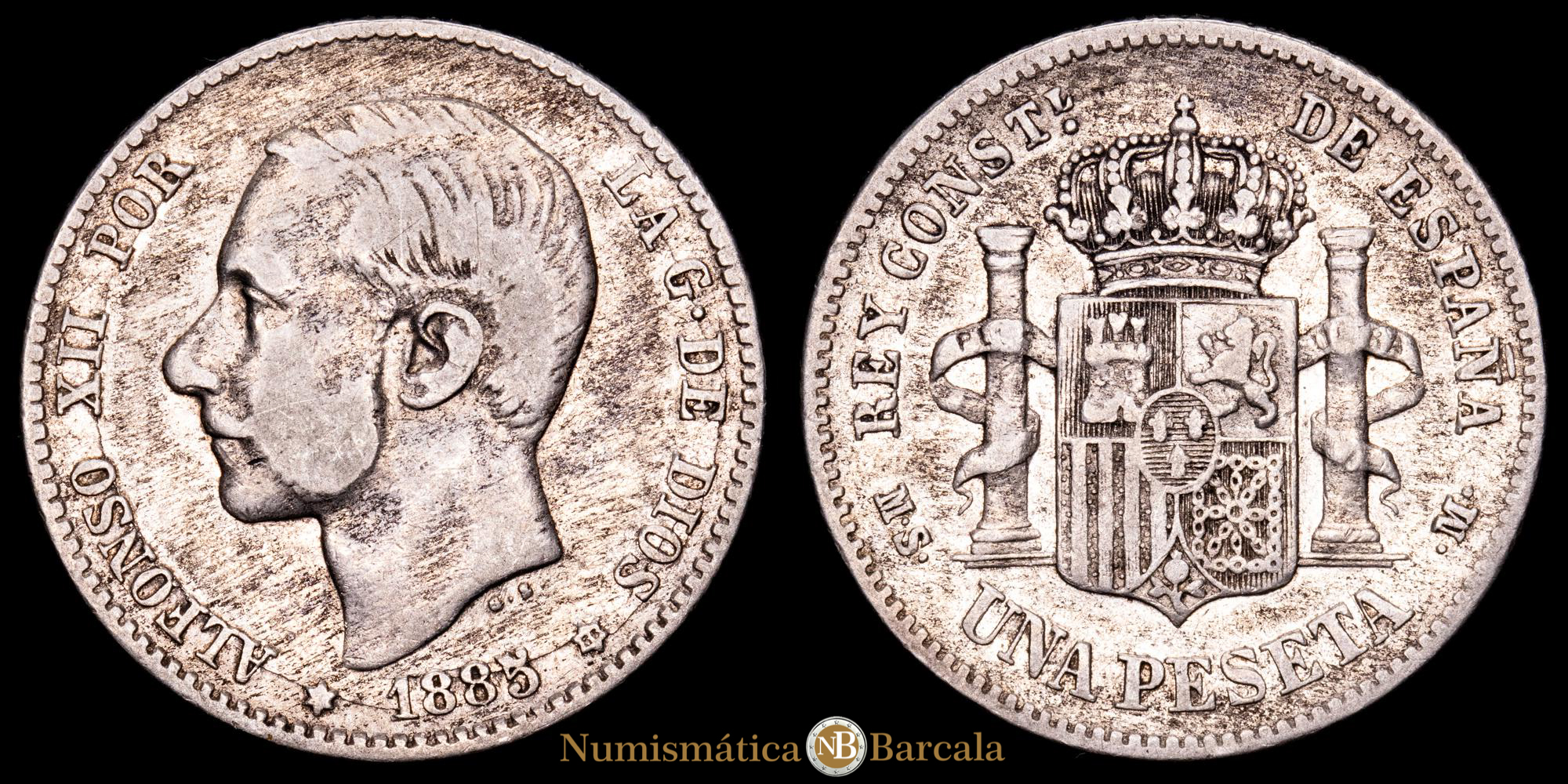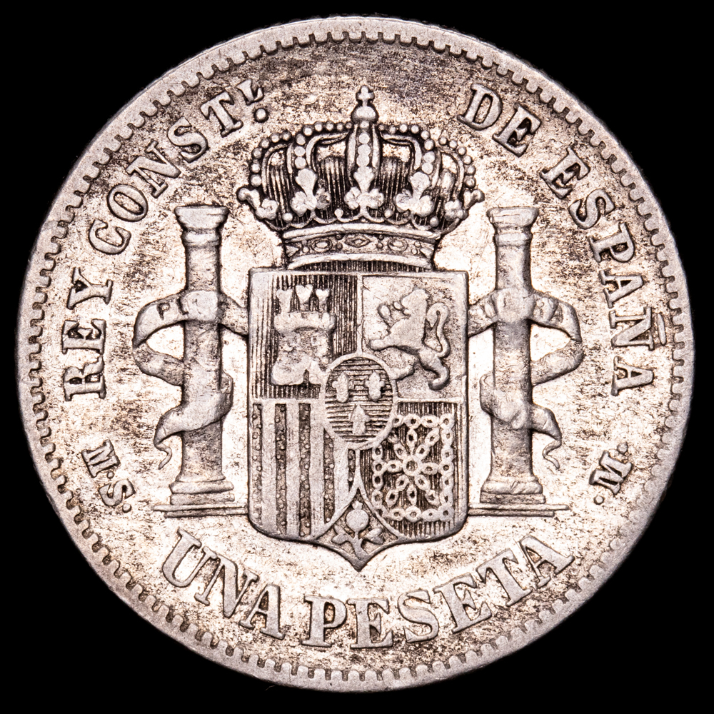 Alfonso XII. 1 Peseta . (4,91 g.). Madrid. 1885 *18-86*. Ensayador MS·M. CAL-25. MBC-. Escasa.