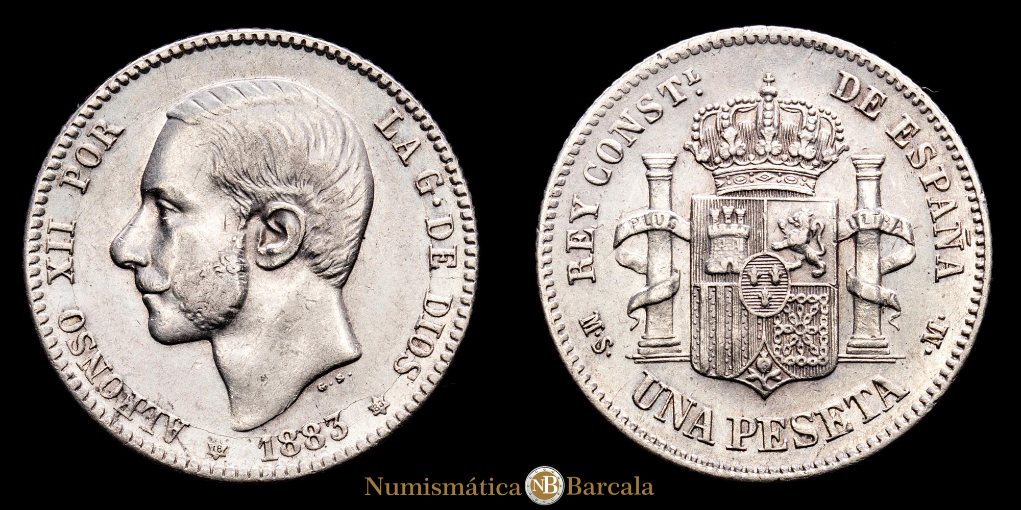 Numismática Barcala > Productos > Monarquia Española > Centenario > 1874-1885 Alfonso XII > Alfonso XII. 1 Peseta. (4,96 g.). Madrid. 1883 *18-83*. Ensayador MS-M. Aureo y Calicó – 21. MBC+.