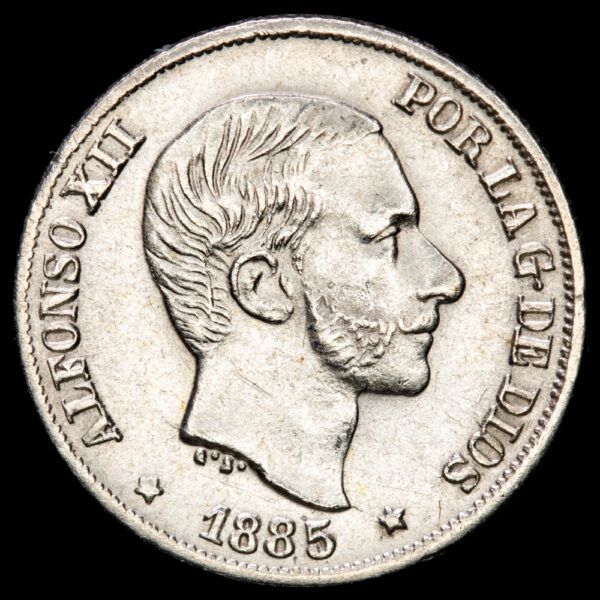 Alfonso XII. 1 Peseta . (4,91 g.). Madrid. 1885 *18-86*. Ensayador MS·M. CAL-25. MBC-. Escasa.