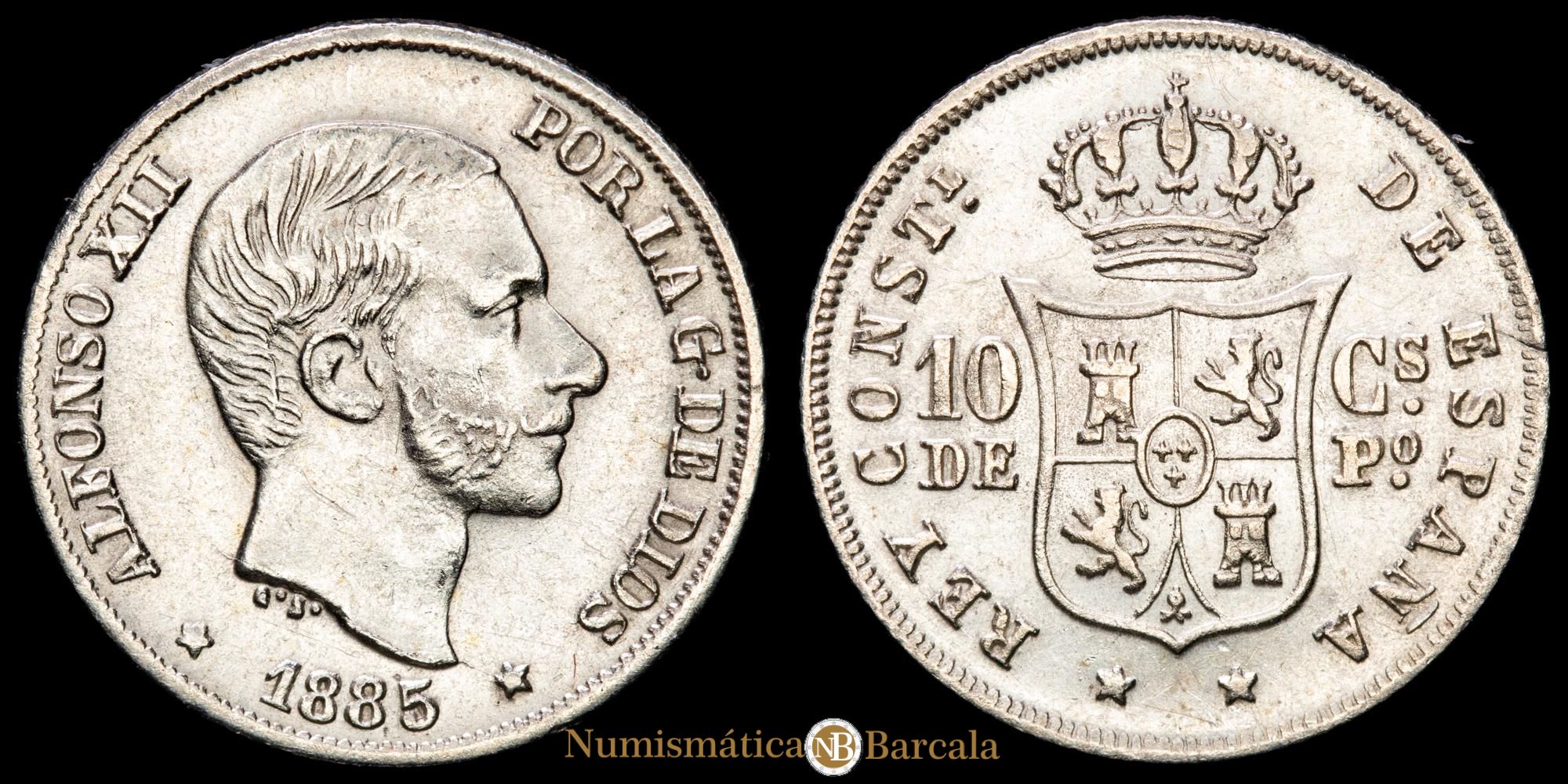 Numismática Barcala > Productos > Monarquia Española > Centenario > 1874-1885 Alfonso XII > Alfonso XII. 10 Céntimos. (2,56g.). Manila. 1885. AC-102. . EBC+. Colonia española.