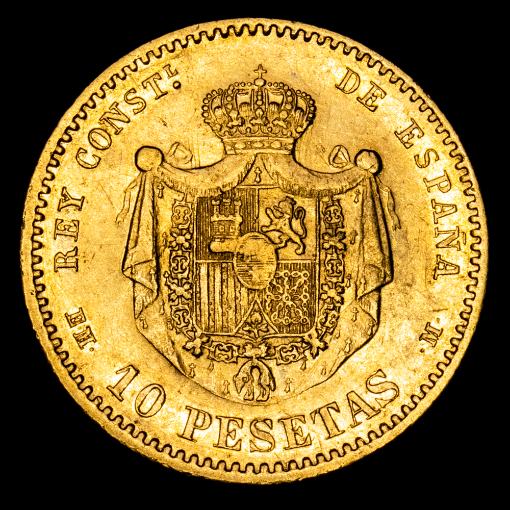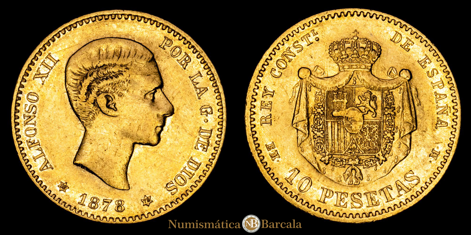 Numismática Barcala > Productos > Monarquia Española > Centenario > 1874-1885 Alfonso XII > Alfonso XII. 10 Pesetas. (3,21 g.). Madrid. 1878 *18-78*. Ensayador EM·M. Aureo y Calicó-65. MBC+. Parte de brillo original.