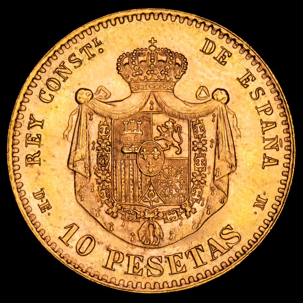Alfonso XII. 10 Pesetas (3,25 g.). Madrid. 1878 – *19-62*. Ensayador DE-M. AC-168. UNC-. Brillo original.
