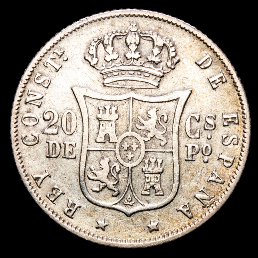 Alfonso XII. 20 Céntimos. (4,91g.). Manila. 1882. AC-107. MBC. Colonia española.