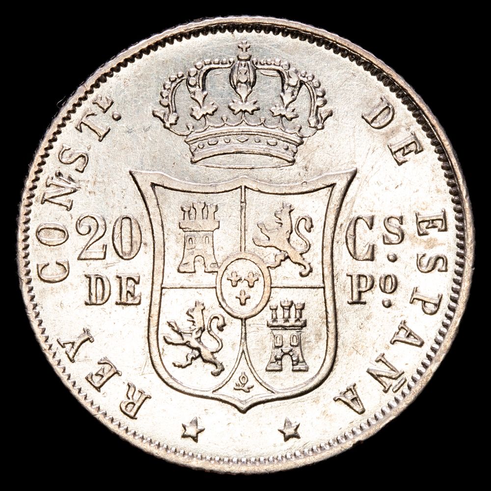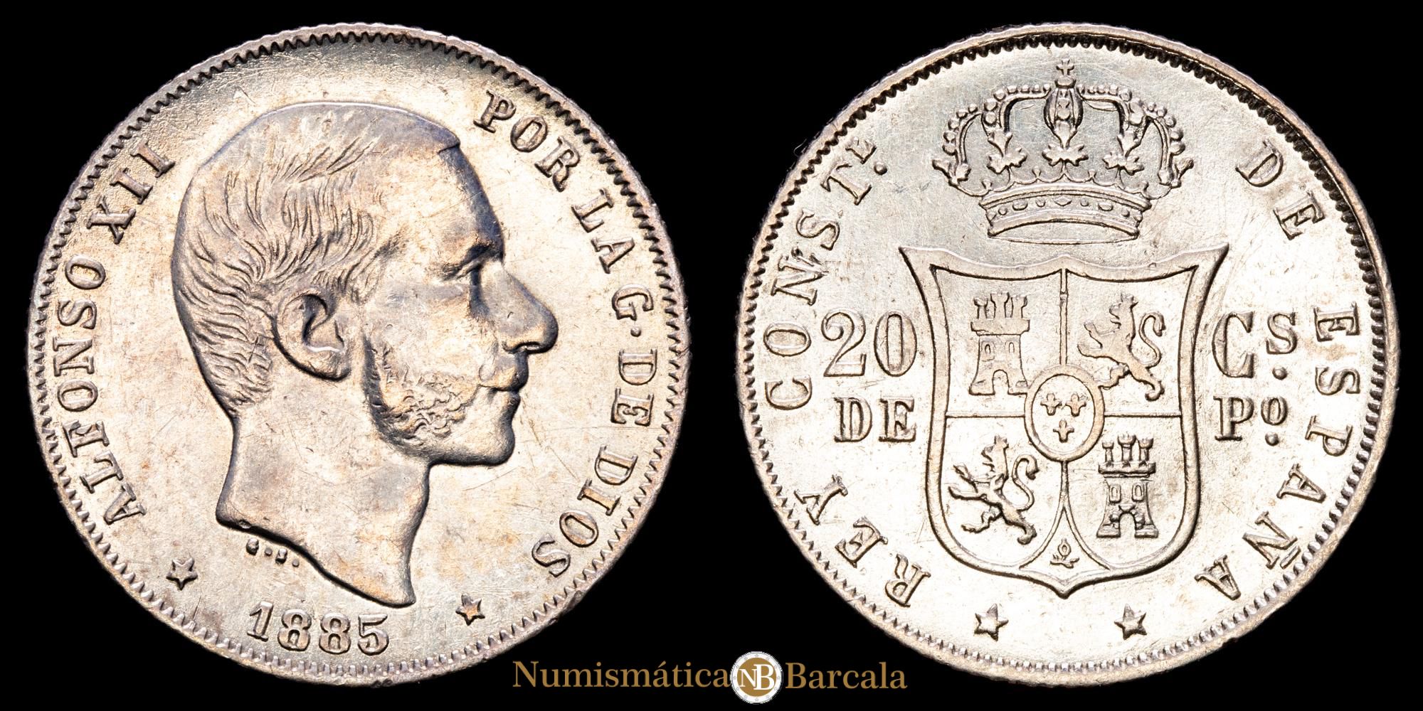 Alfonso XII. 20 Céntimos. (5,01g.). Manila. 1885. AC-111. EBC-. Colonia española. Restos de brillo original.