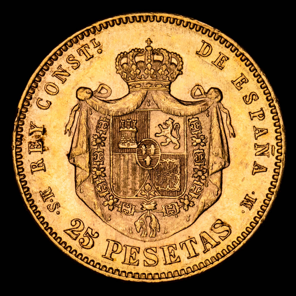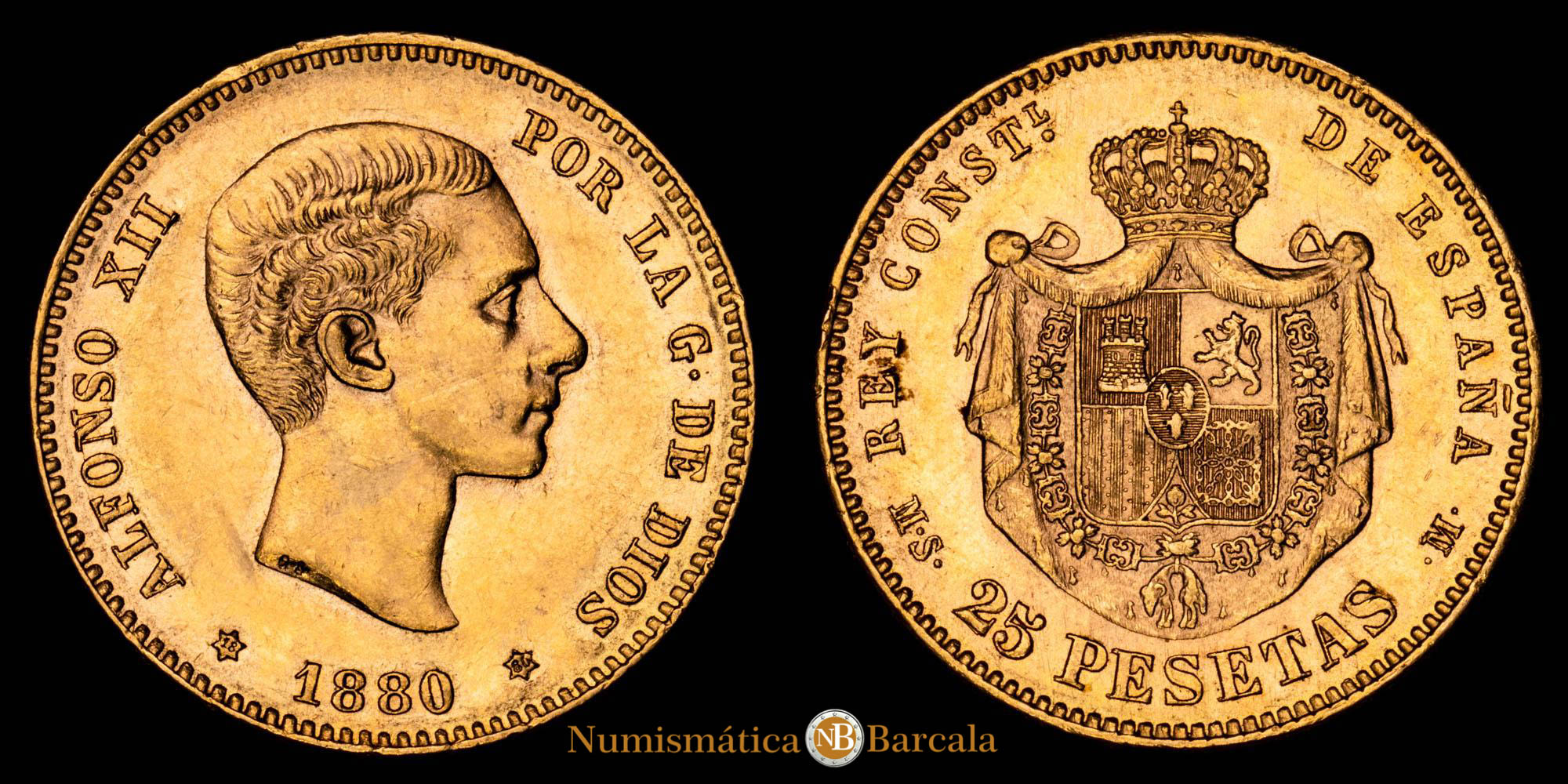 Numismática Barcala > Productos > Monarquia Española > Centenario > 1886-1931 Alfonso XIII > Alfonso XII. 25 Pesetas. (8,05 g.). Madrid. 1880. Ensayador MS·M. Aureo y Calicó – 79. EBC+. Brillo original.