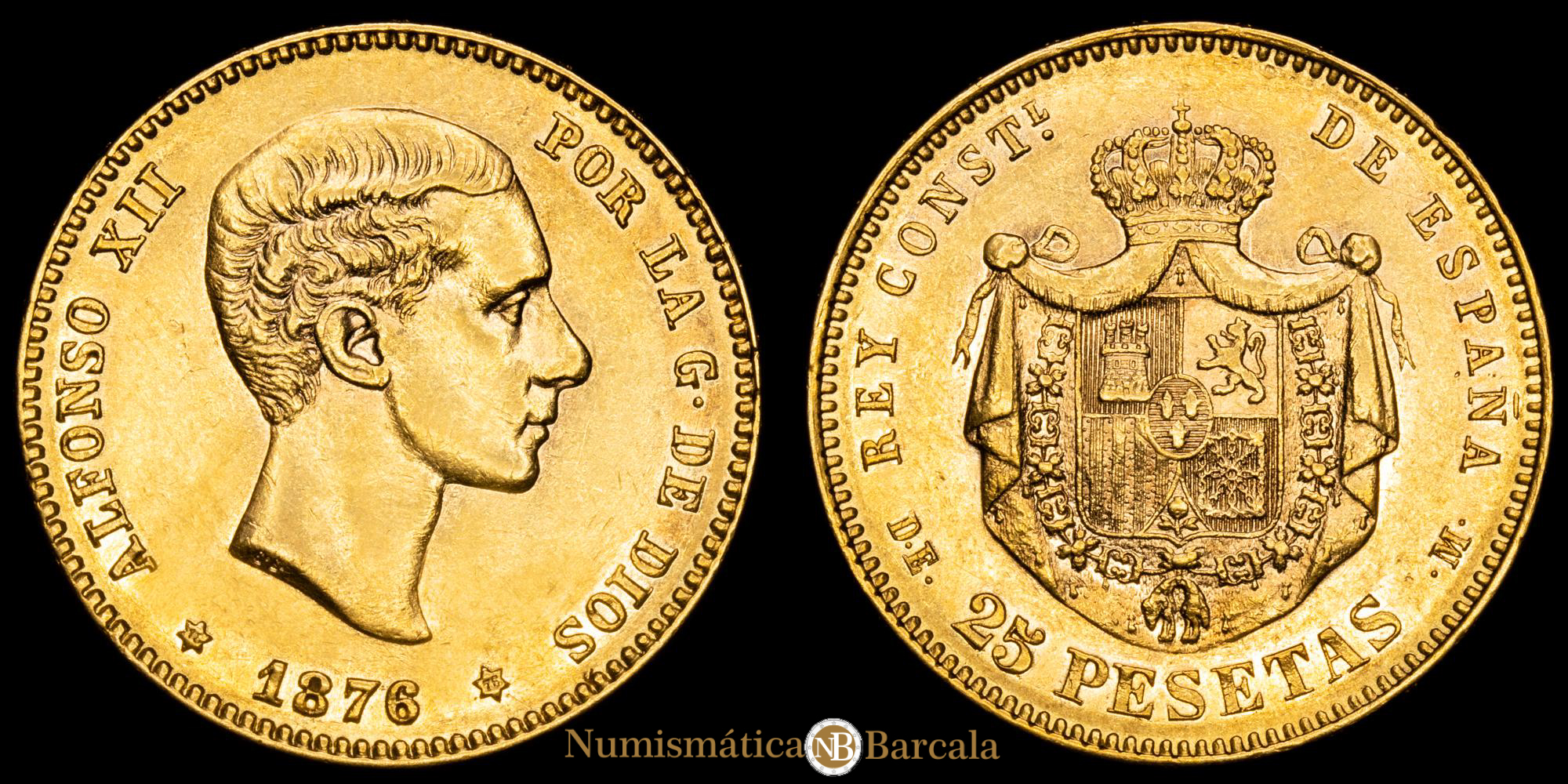 Numismática Barcala > Productos > Monarquia Española > Centenario > 1874-1885 Alfonso XII > Alfonso XII. 25 Pesetas. (8,06g.). Madrid. 1876*18-76*. Ensayador DE·M. AC-67. UNC-.