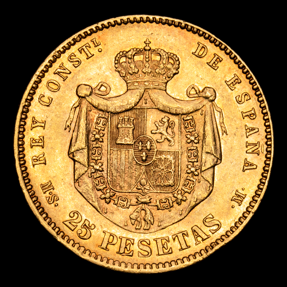 Numismática Barcala > Productos > Monarquia Española > Centenario > 1874-1885 Alfonso XII > Alfonso XII. 25 Pesetas. ( 8,07 g.). Madird. 1884 *18-84*. Ensayador MS·M. Aureo y Calicó-19. EBC-.