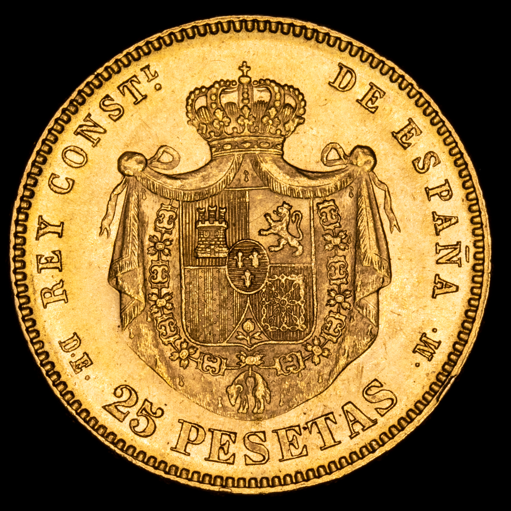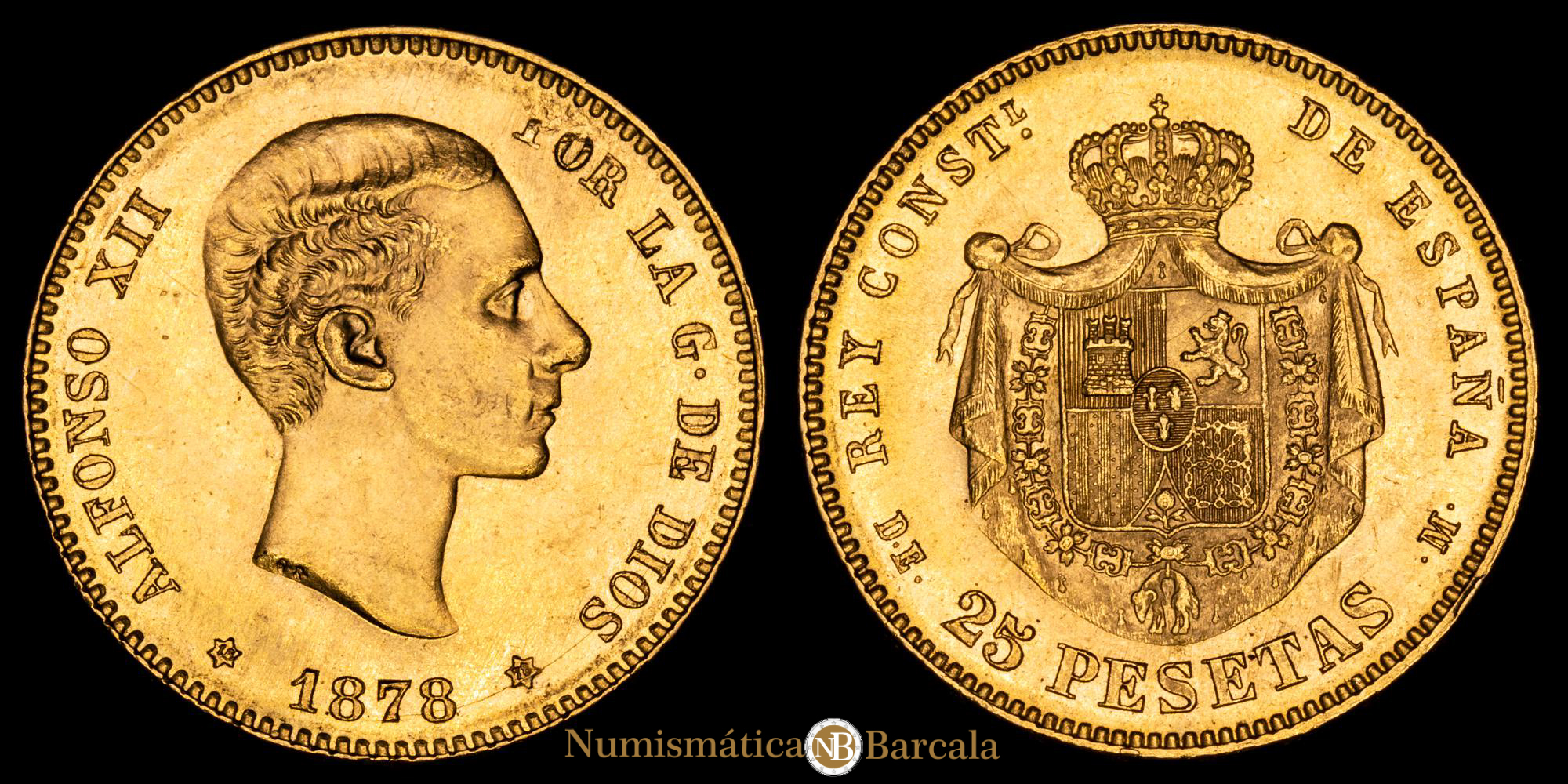 Numismática Barcala > Productos > Monarquia Española > Centenario > 1874-1885 Alfonso XII > Alfonso XII. 25 Pesetas. (8,08g.). Madrid. 1878*18-78*. Ensayador DE·M. AC-70. UNC.