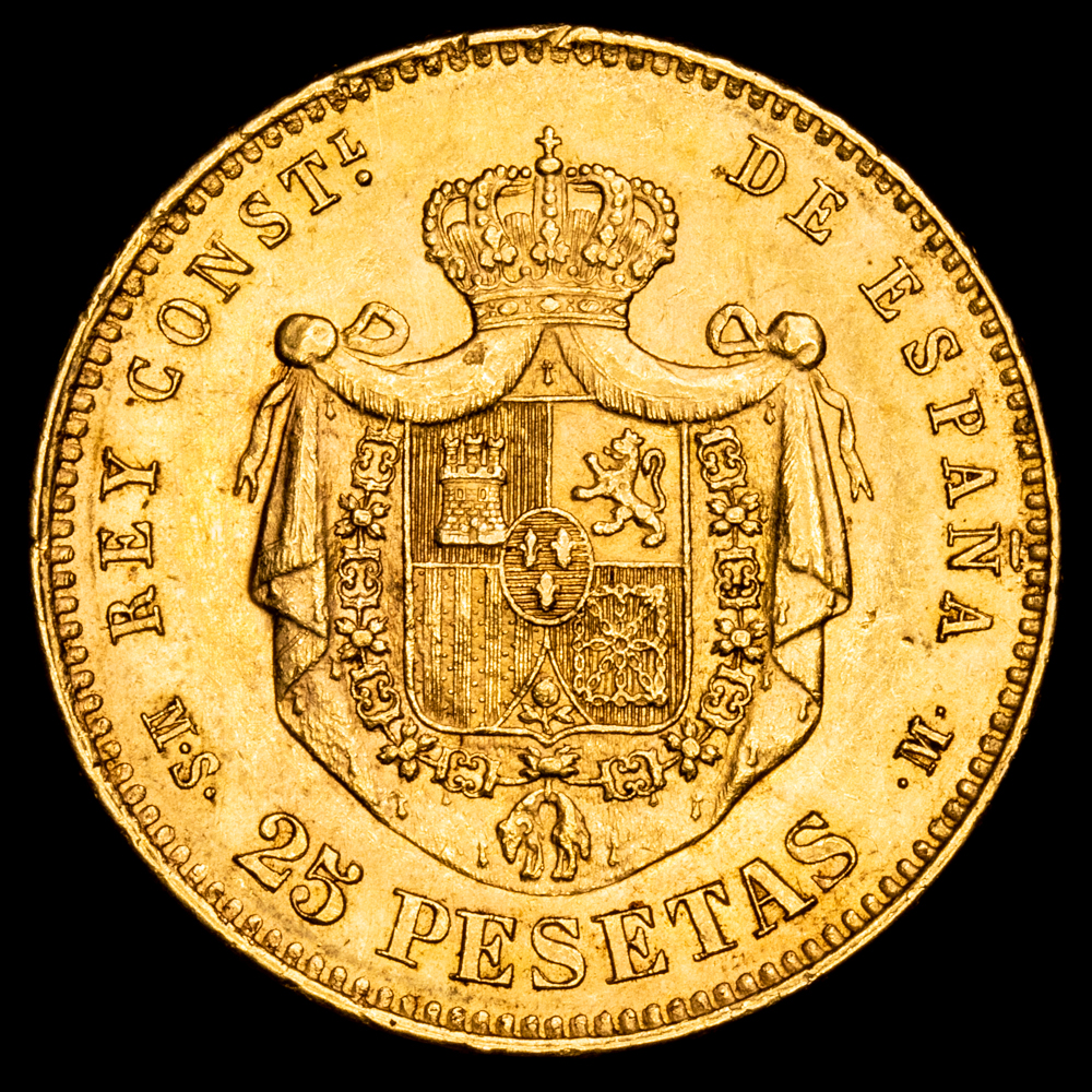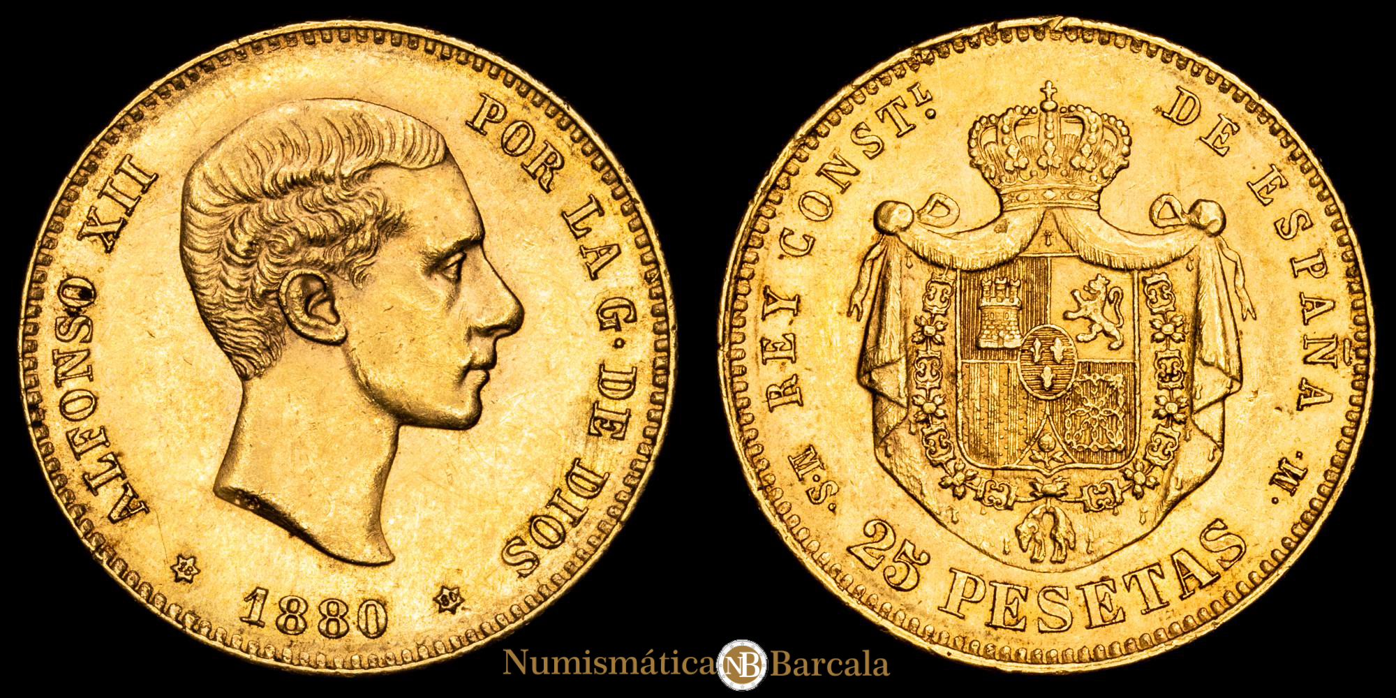 Numismática Barcala > Productos > Monarquia Española > Centenario > 1874-1885 Alfonso XII > Alfonso XII. 25 Pesetas. (8,08g.). Madrid. 1880*18-80*. Ensayador MS·M. AC-79. XF+. Restos de brillo original.