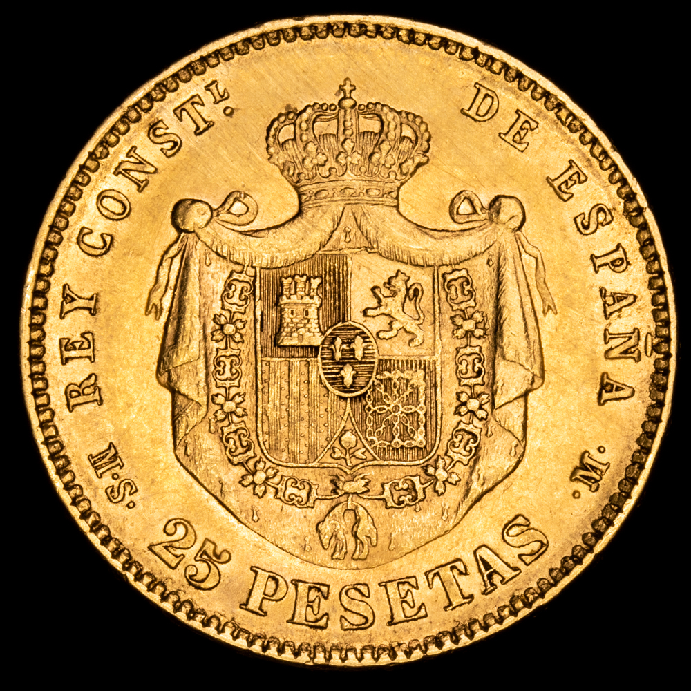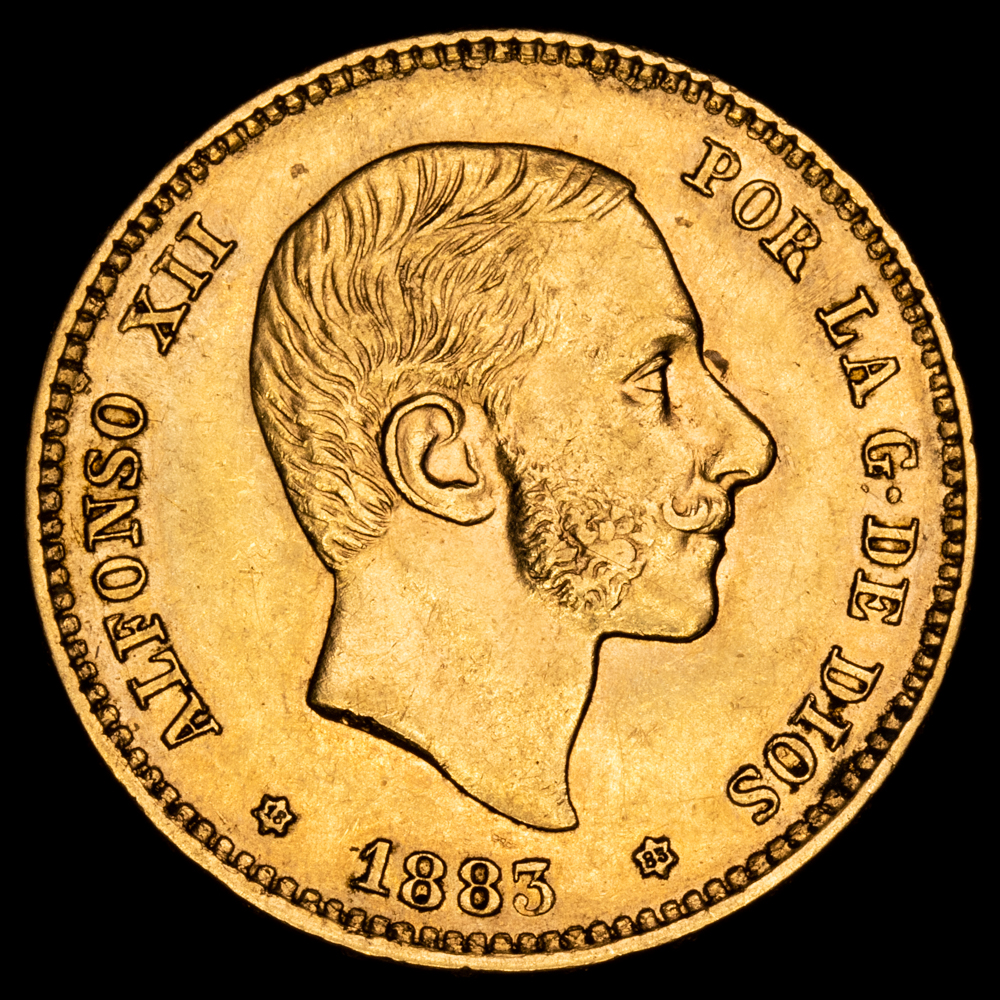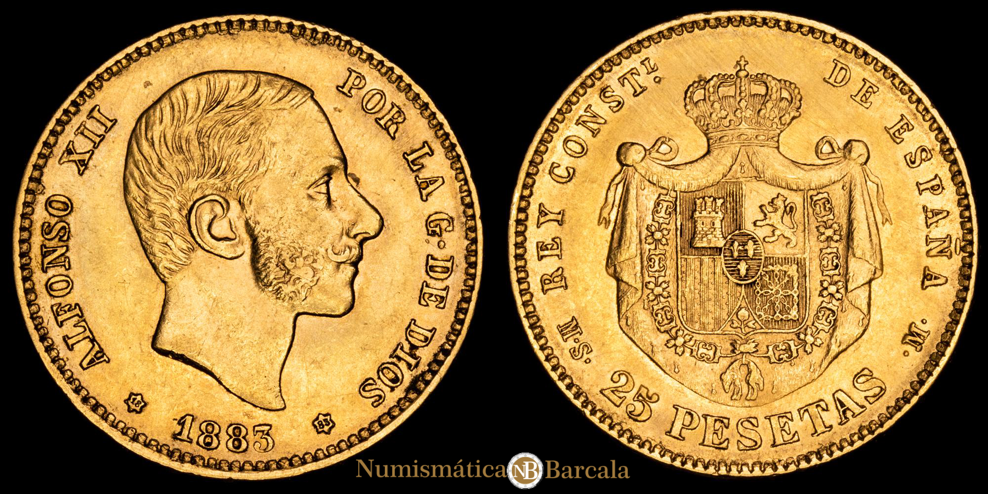 Numismática Barcala > Productos > Monarquia Española > Centenario > 1874-1885 Alfonso XII > Alfonso XII. 25 Pesetas. (8,08g.). Madrid. 1883*18-83*. Ensayador MS·M. AC-82. EBC+. Ex. Baldomero Collection.