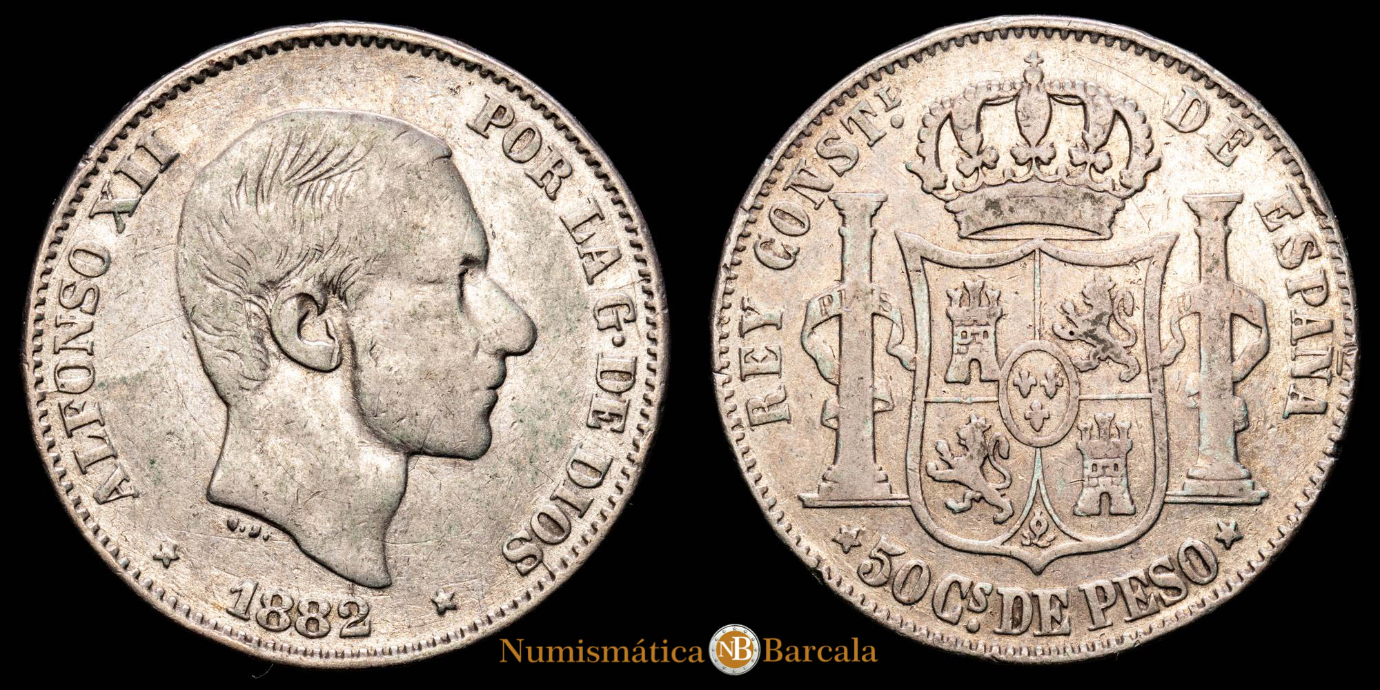 Numismática Barcala > Productos > Monarquia Española > Centenario > 1874-1885 Alfonso XII > Alfonso XII. 50 céntimos. (12,67 g.). Manila (Filipinas). 1882. Aureo y Calico-118. MBC-.