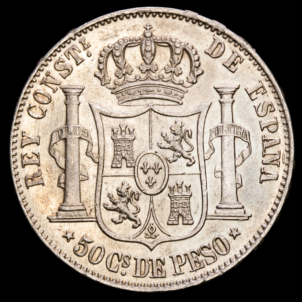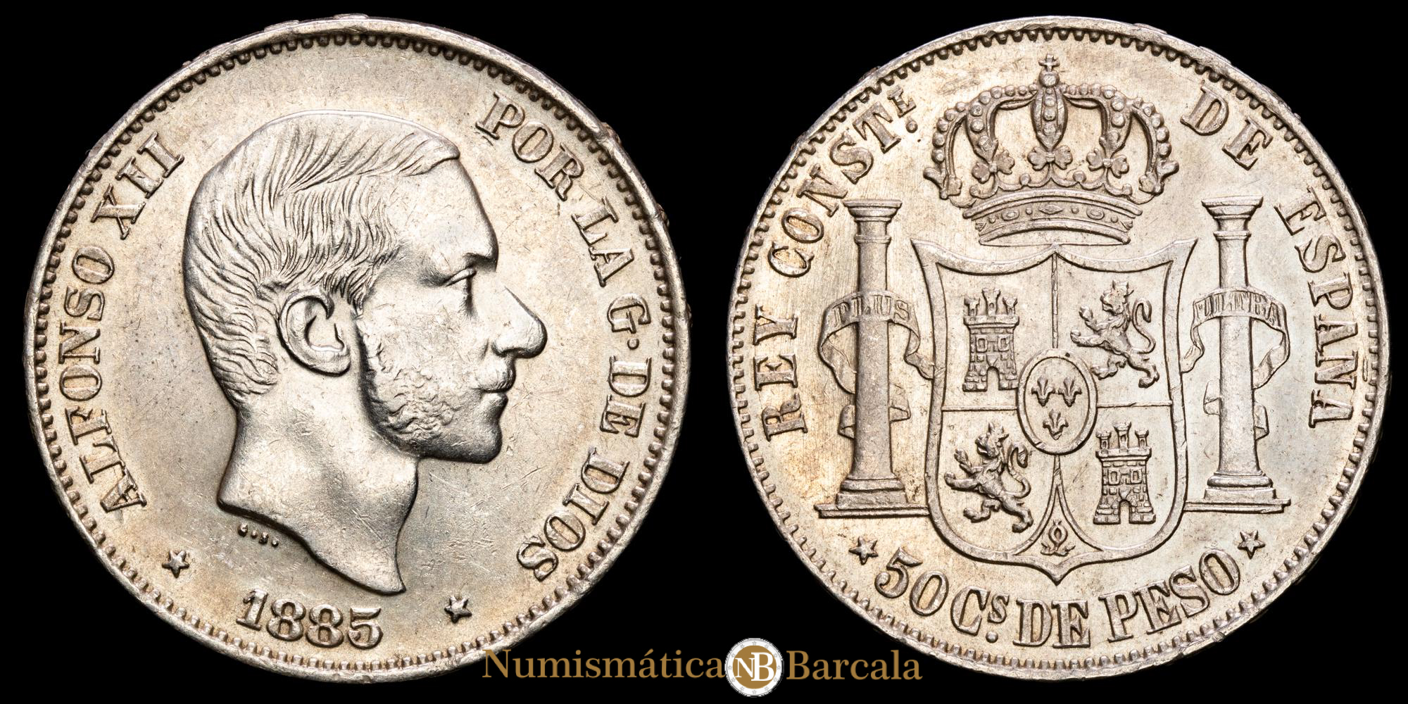 Numismática Barcala > Productos > Monarquia Española > Centenario > 1874-1885 Alfonso XII > Alfonso XII. 50 Céntimos de Peso (12,99 g.). 1885. Manila. AC-124. UNC-