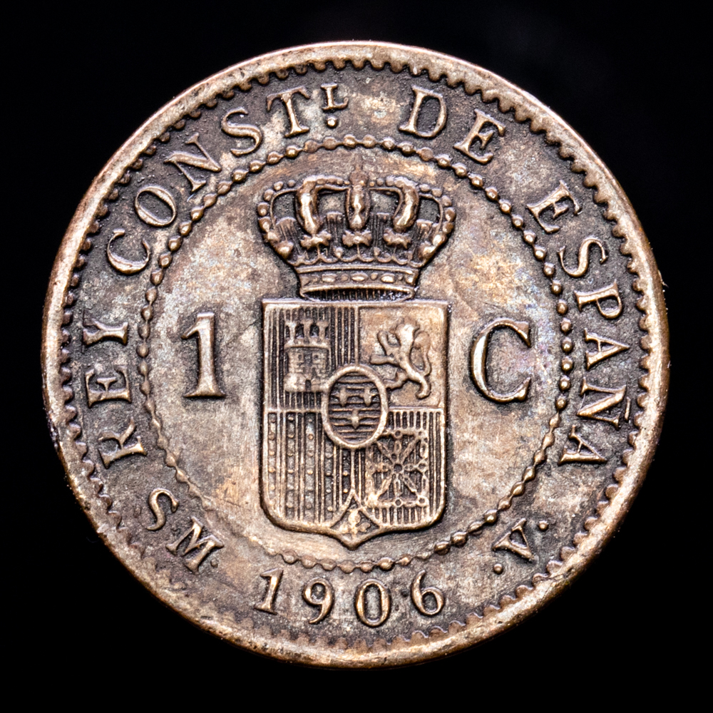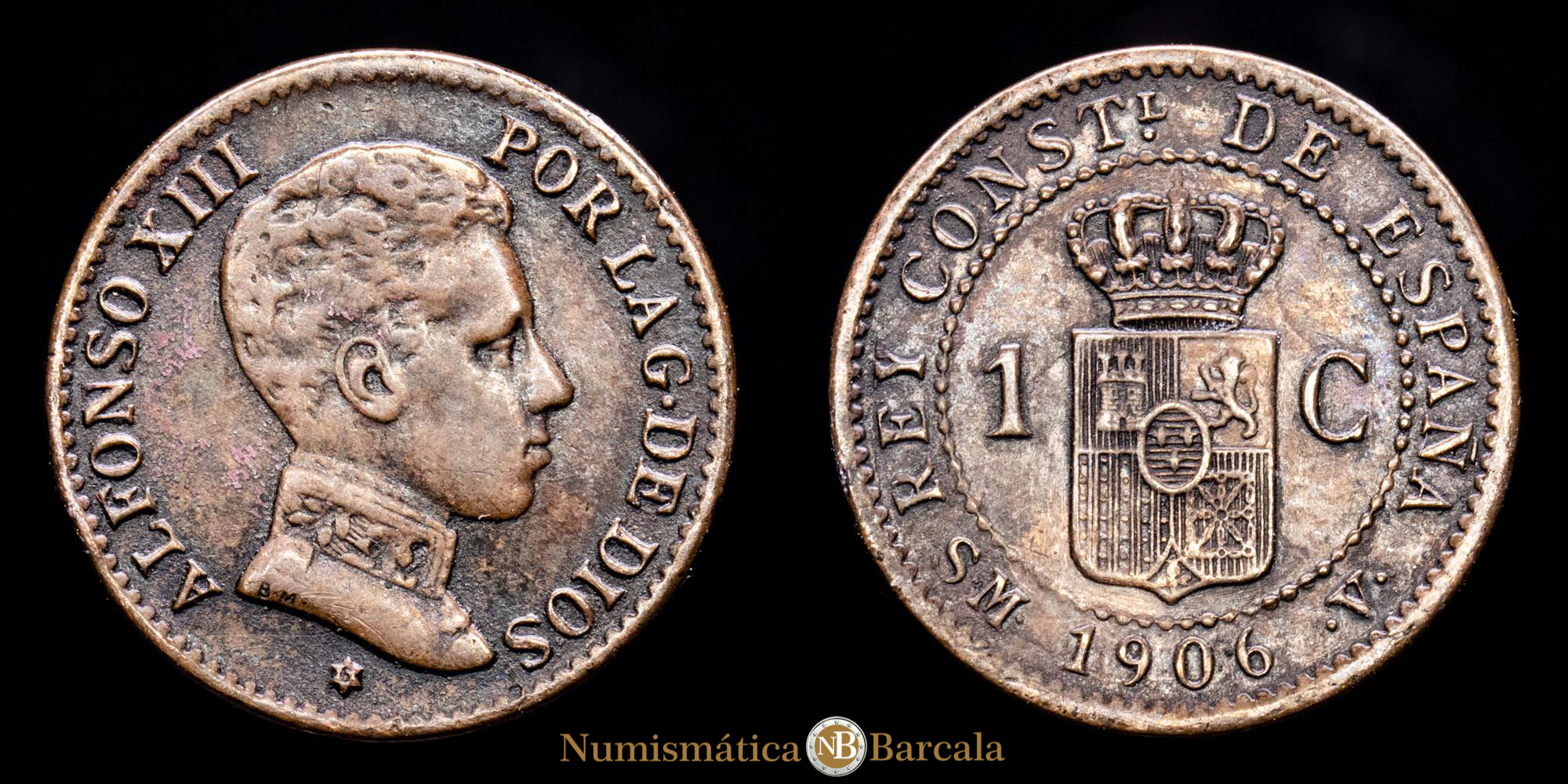 Numismática Barcala > Productos > Monarquia Española > Centenario > 1886-1931 Alfonso XIII > Alfonso XIII. 1 Céntimo. (0,94 g.). Madrid. 1906. Ensayador SM·V. Aureo y Calicó – 1. MBC+. Rara