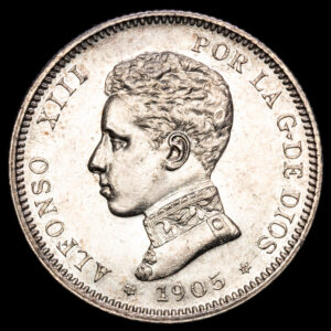 Alfonso XIII. 2 Pesetas (10,07 g.). 1905 – *19-05*. Ensayador SM·V. AC-88. UNC