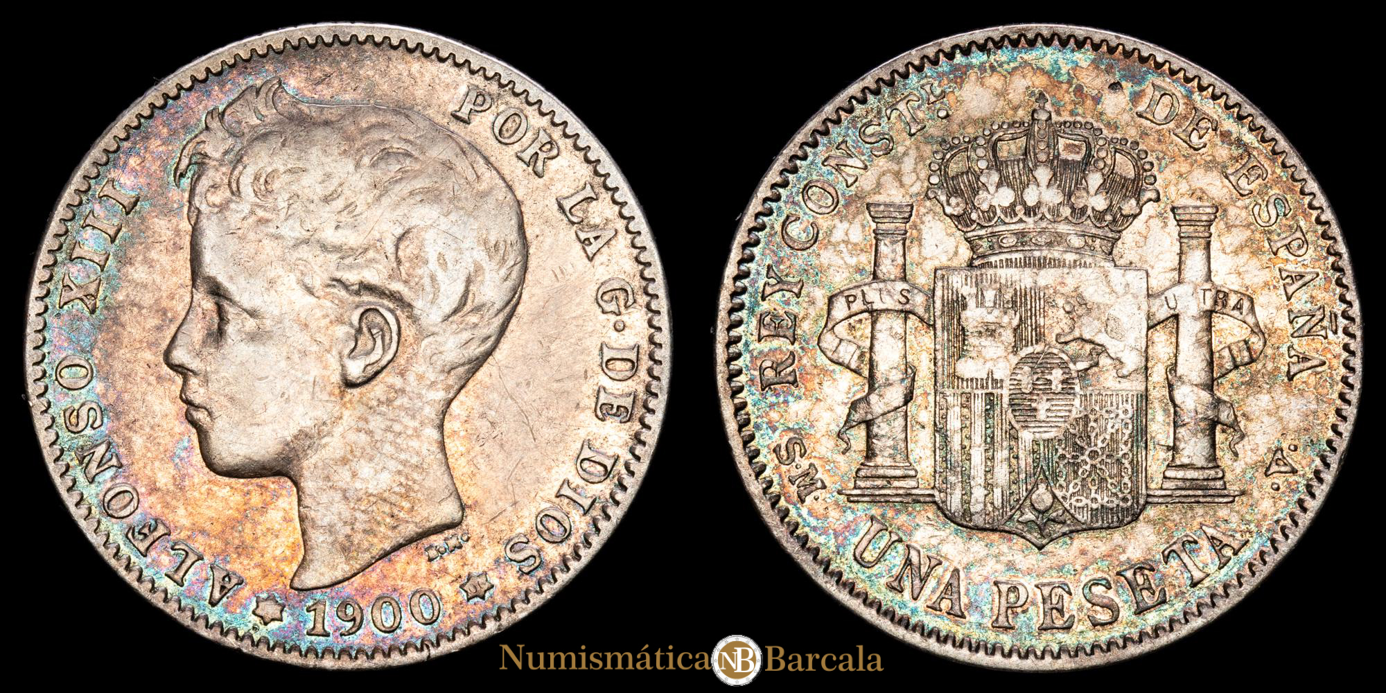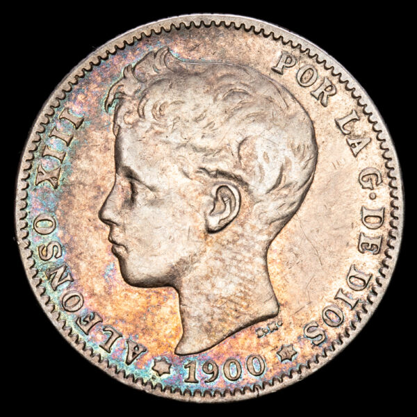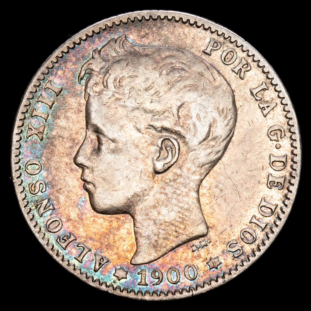 Numismática Barcala > Productos > Monarquia Española > Centenario > 1886-1931 Alfonso XIII > Alfonso XIII. 1 Peseta. (4,88g.). Madrid. 1900 (19-00). Ensayador SM·V. CA-59. MBC.