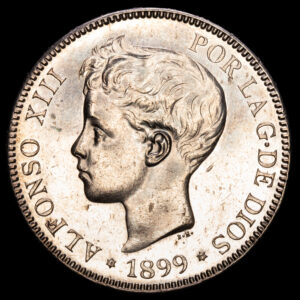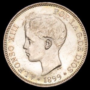 Alfonso XIII. 5 Pesetas (25,15 G.). 1899 *18-99*. Madrid. Ensayador SG·V. AC-110.