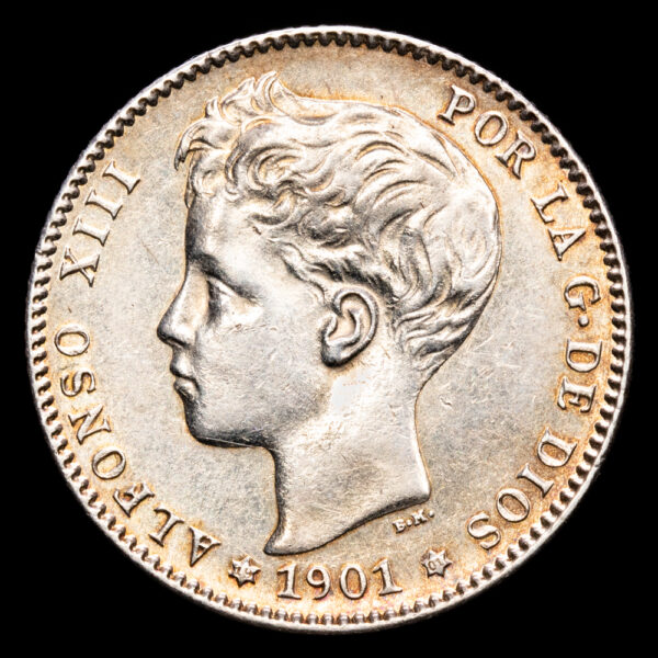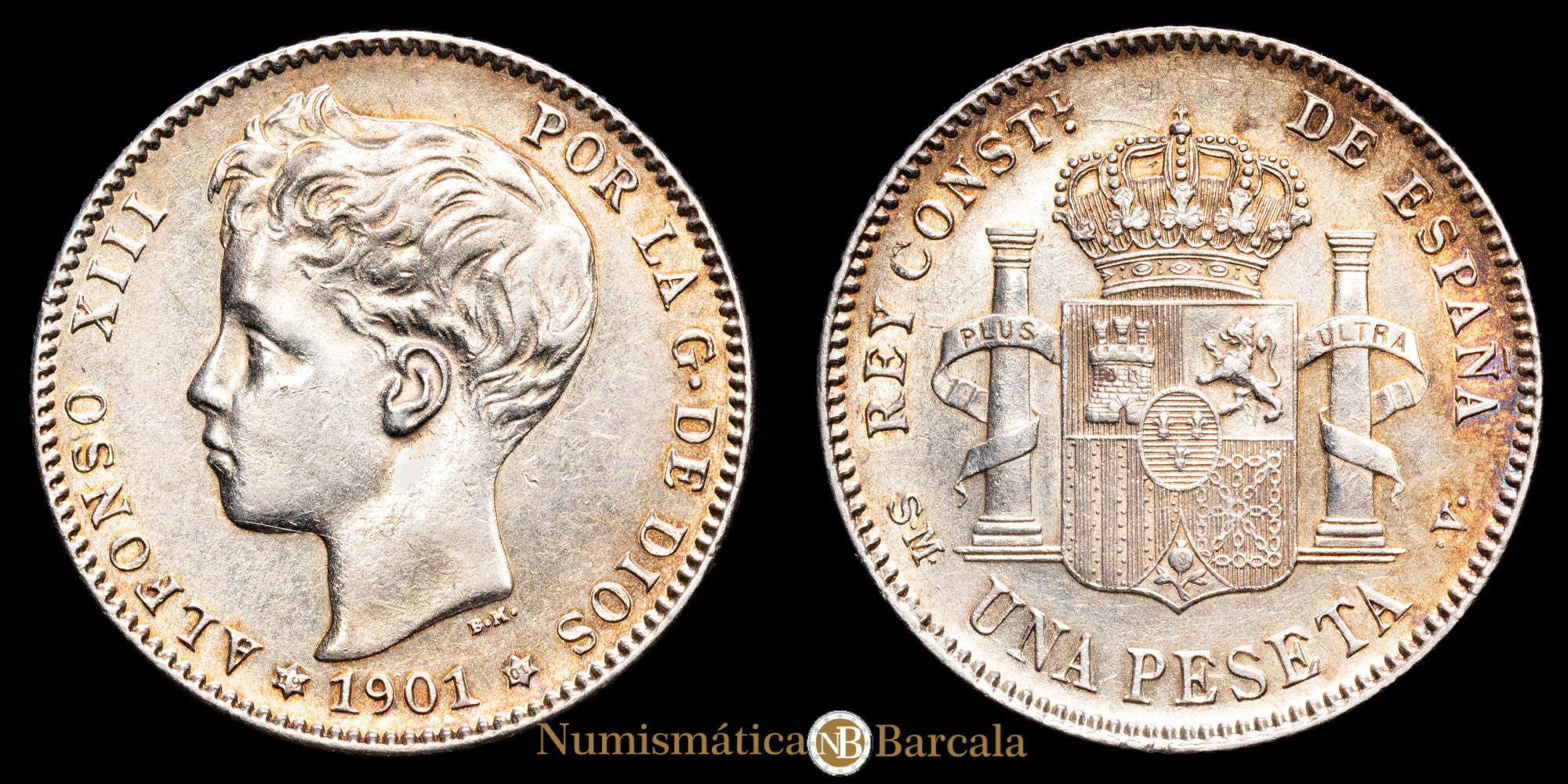 Numismática Barcala > Productos > Monarquia Española > Centenario > 1886-1931 Alfonso XIII > Alfonso XIII. 1 Peseta (4,99 g.). 1900*19-01. Madrid. Ensayador SM·V. CAL-60. EBC+