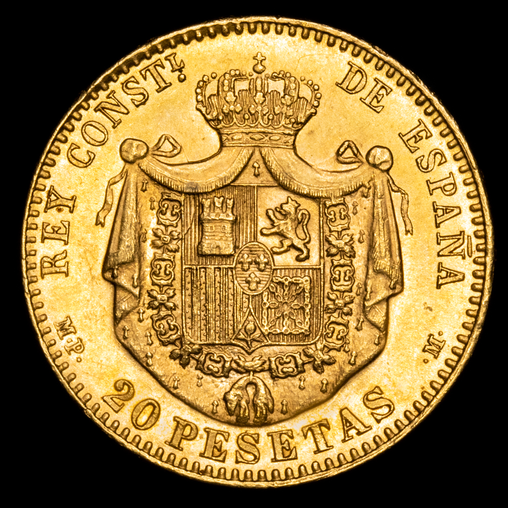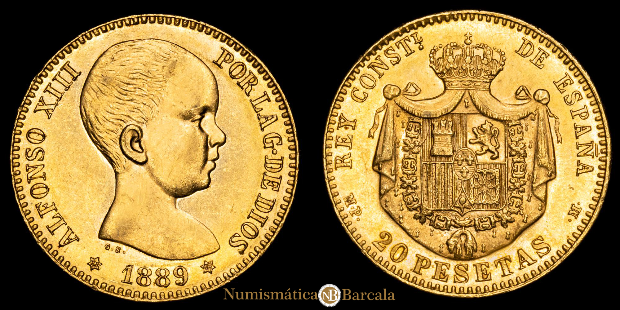 Numismática Barcala > Productos > Monarquia Española > Centenario > 1886-1931 Alfonso XIII > Alfonso XIII. 20 Pesetas. (6,45g.). Madrid. 1889*18-89*. Ensayador MP·P. AC-113. SC-. Brillo original.