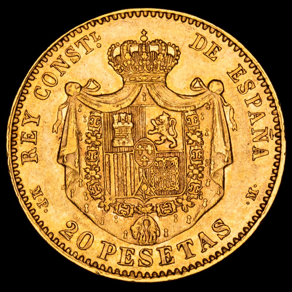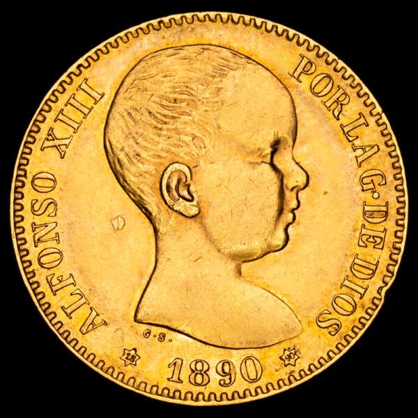Numismática Barcala > Productos > Monarquia Española > Centenario > 1886-1931 Alfonso XIII > Alfonso XIII. 20 Pesetas (6,47 g.). Madrid. 1890 – *18-90*. Ensyador MP-M. AC-114. EBC. Pequeña hoja en lado izquierdo del busto.