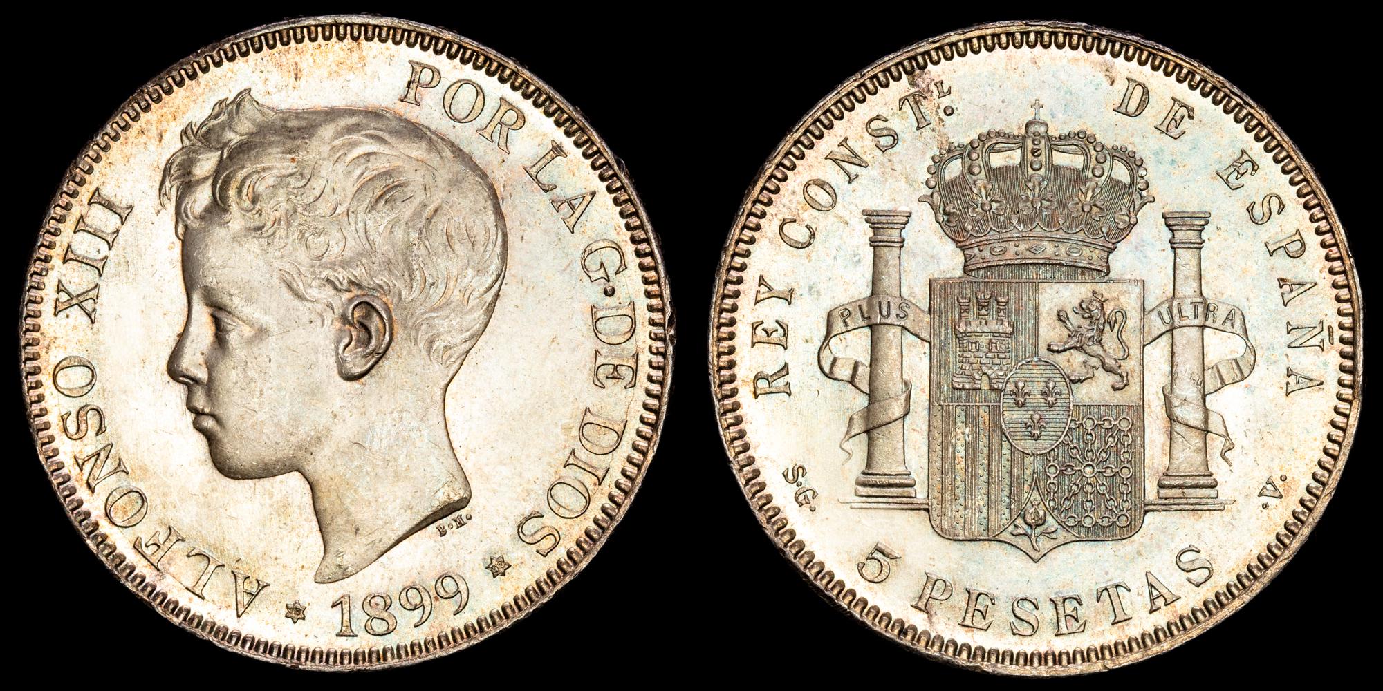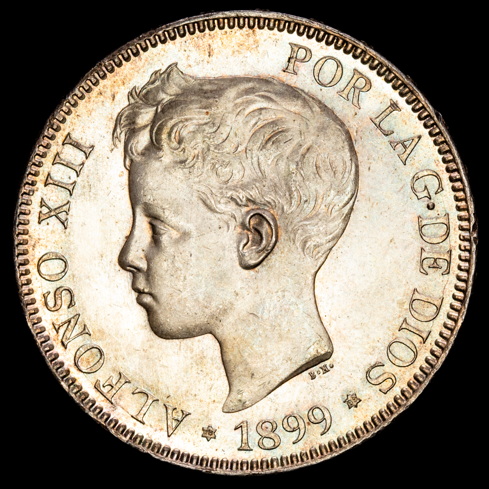 Numismática Barcala > Productos > Monarquia Española > Centenario > 1886-1931 Alfonso XIII > Alfonso XIII. 5 Pesetas ( 25,18 g.). 1899. Madrid. Ensayador SG·V. AC-110. SC.
