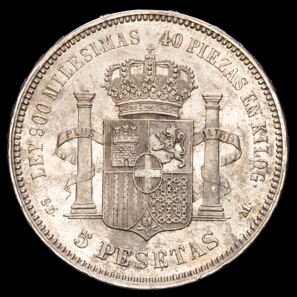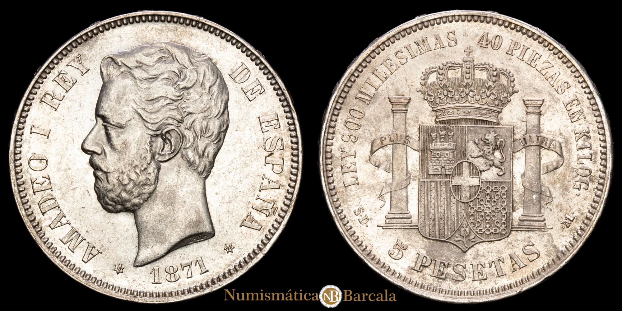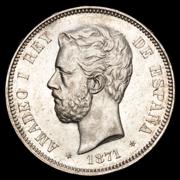 Amadeo I. 5 Pesetas. (25,02g.). Madrid. 1871. Ensayador SD-M. AC-1. EBC-. Restos de brillo original.