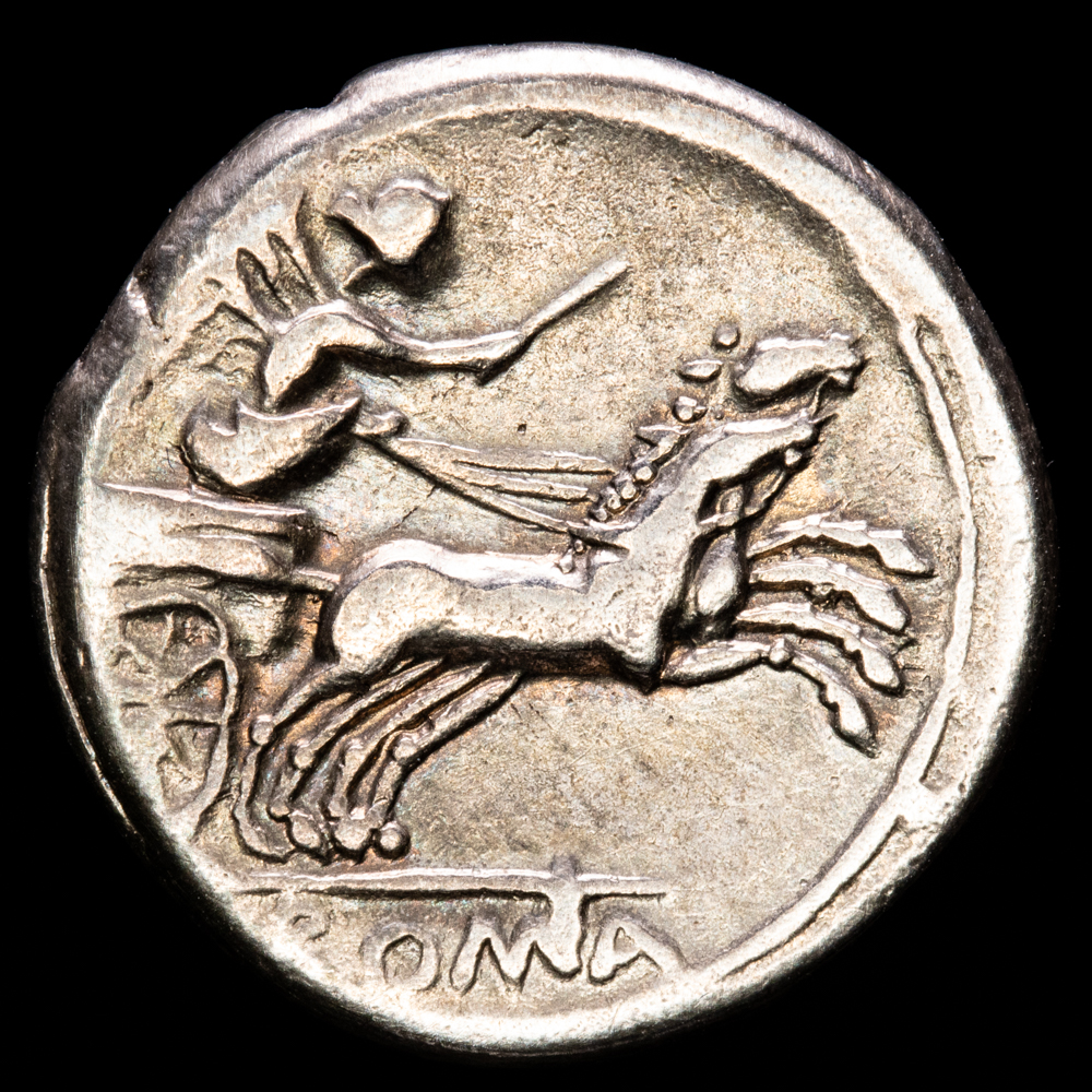 Anónimo. Denario de plata (3,97 g.). Roma, 157-156 a.C. FFC-77. VF