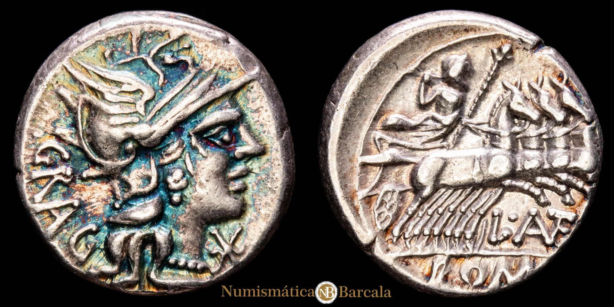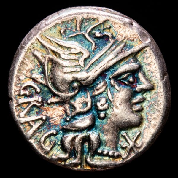Numismática Barcala > Productos > Romanas > REPÚBLICA > Antestius Gragulus. Denario (3,91 g.). Roma, 136 a.C. Craw-238/1. EBC+/EBC. Precioso color azulado.