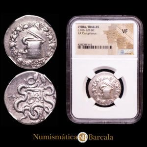 Lydia. Tralles. Cistoforo. Siglos II-I a.C. 155-145 a.C. Serie Kleiner-Noe 21. Encapsulada por la NGC VF.