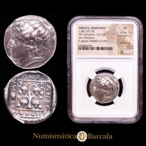 Tracia, Maroneia. Tridrachm (15,91 g), 386-347 BC. Magistrado, Megakleos. Schoneri-Geiss 390. Encapsulada por la NGC, VF