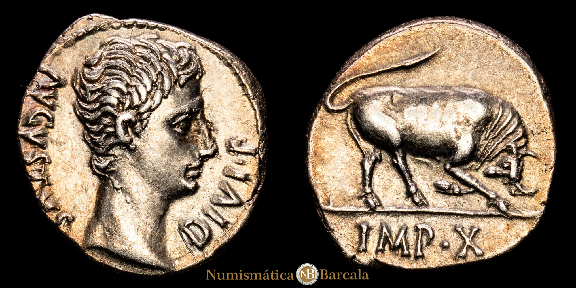 Augusto. Denario. (3,78 g.). Lugdunum (Lyon). 27 a.C. – 14 d.C.. RIC-1672. EBC-. Rara