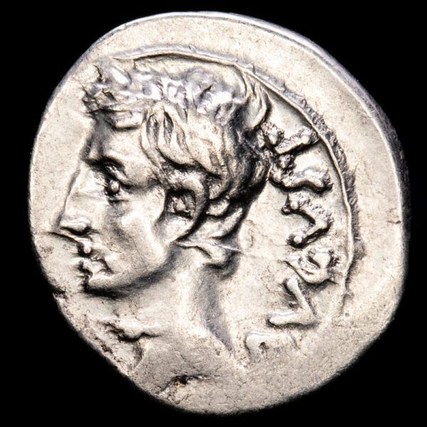 Augusto. Quinario. (1,83 g.). Emérita. 32 a.C. a 14 d.C.. RIC-1-B. UNC-. Raro en esta condición. Busto a izquierda.