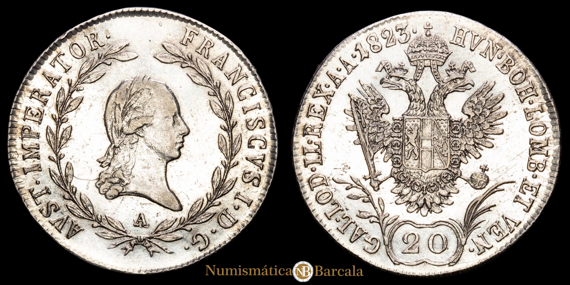 Austria – Francesco I. 20 Kreuzer. (6,67g.). Viena. 1823. Ensayador A. KM-2143. UNC.