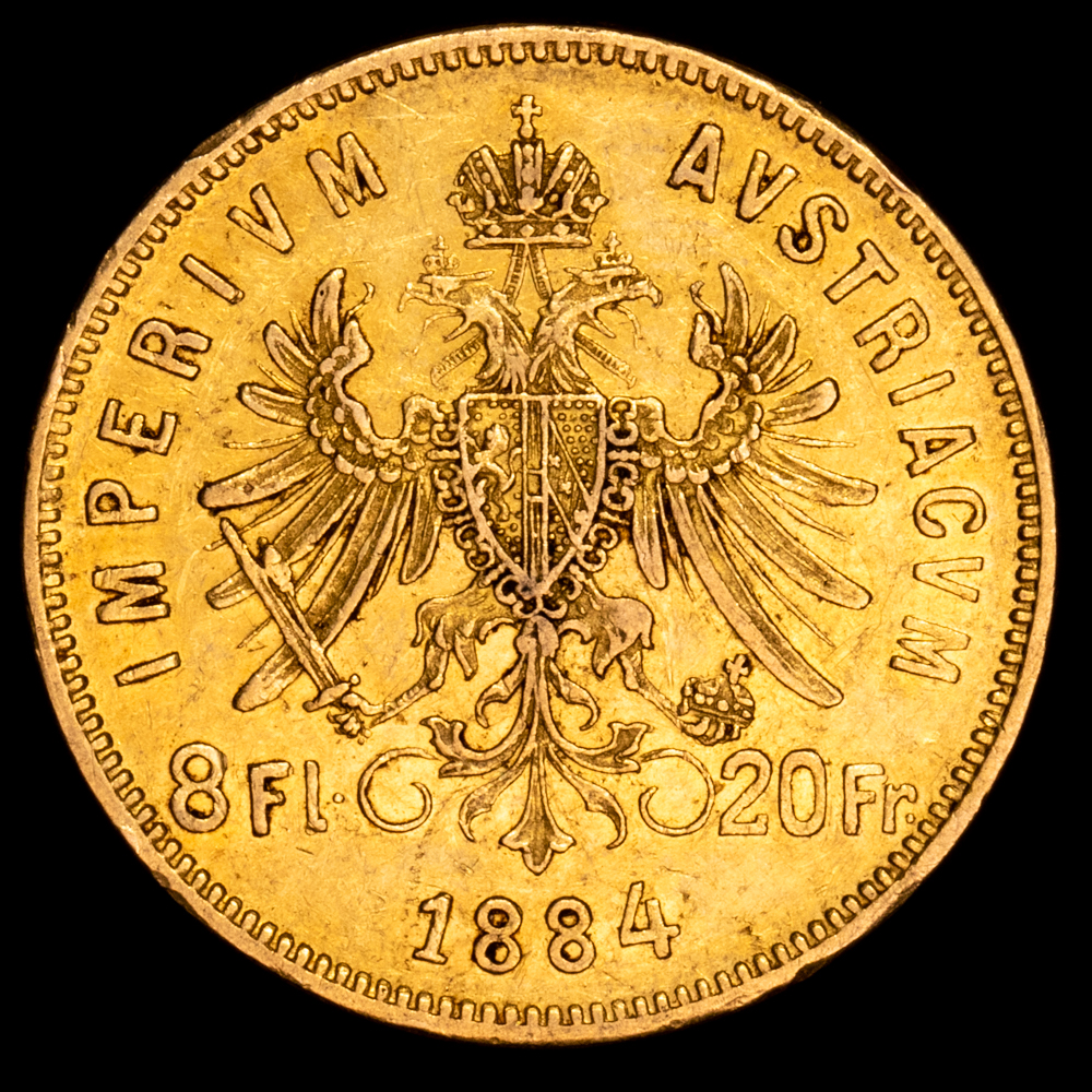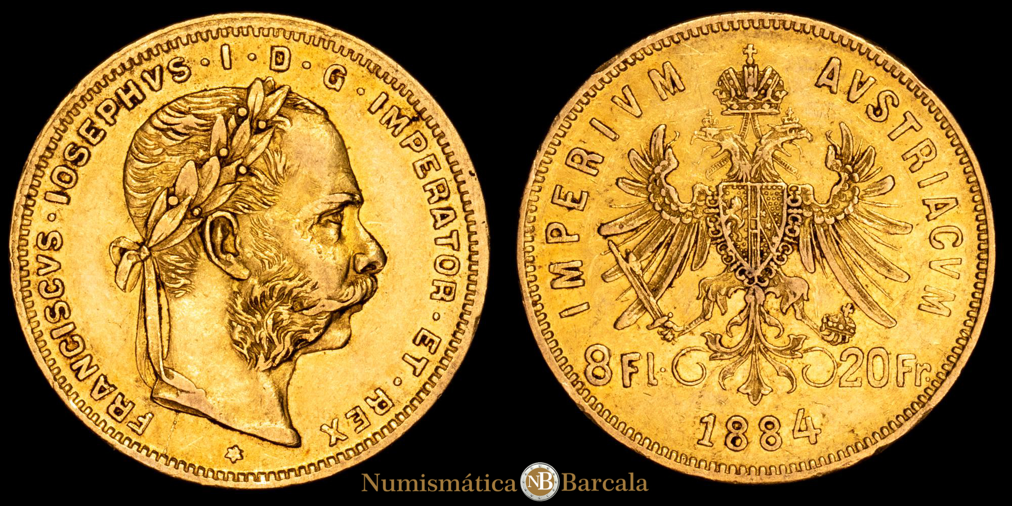 Austria – Francisco José I. 8 Florines. (6,44 g.). Austria. 1884. KM-2269. EBC. Restos de brillo original. Escasa.