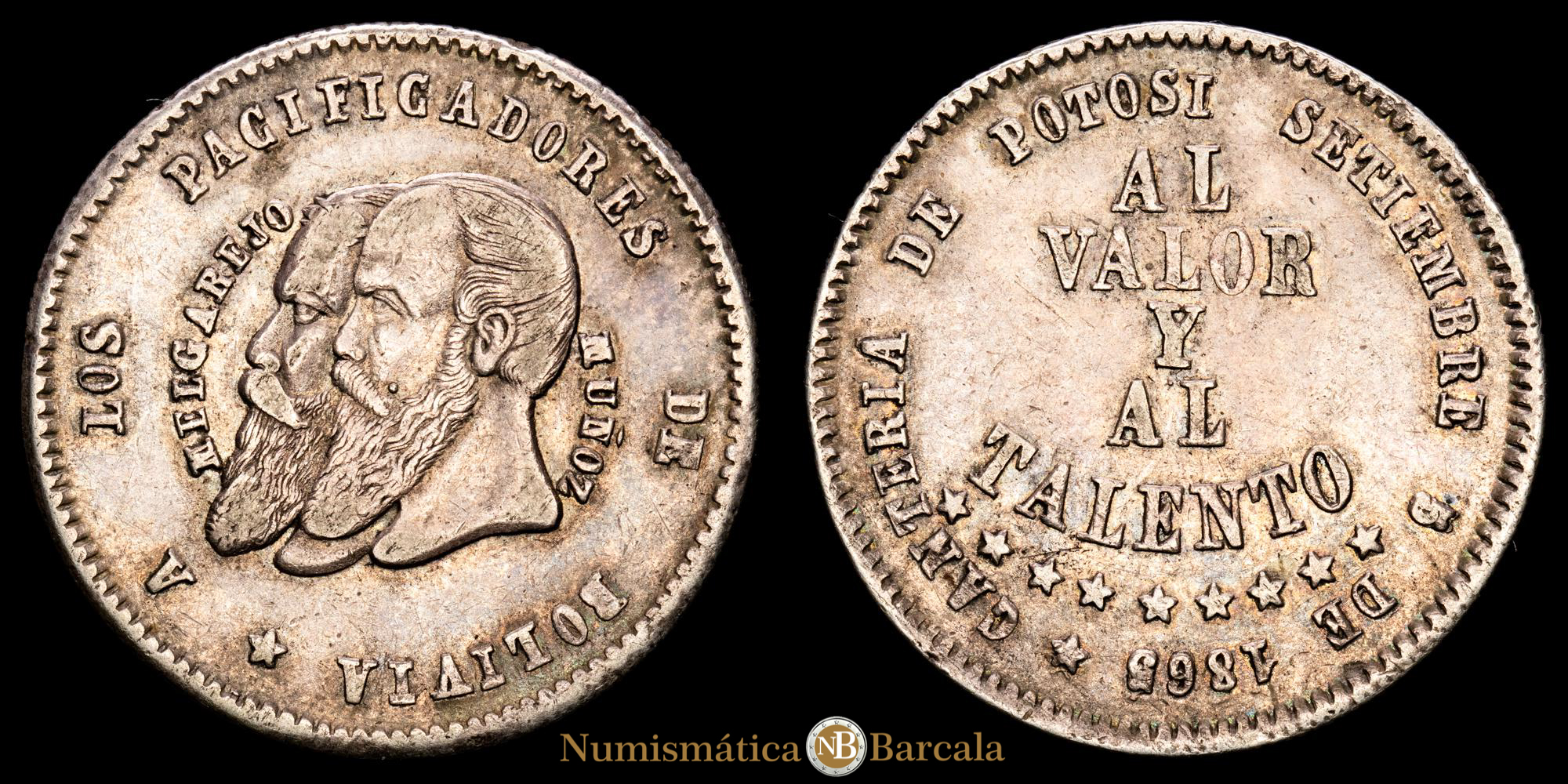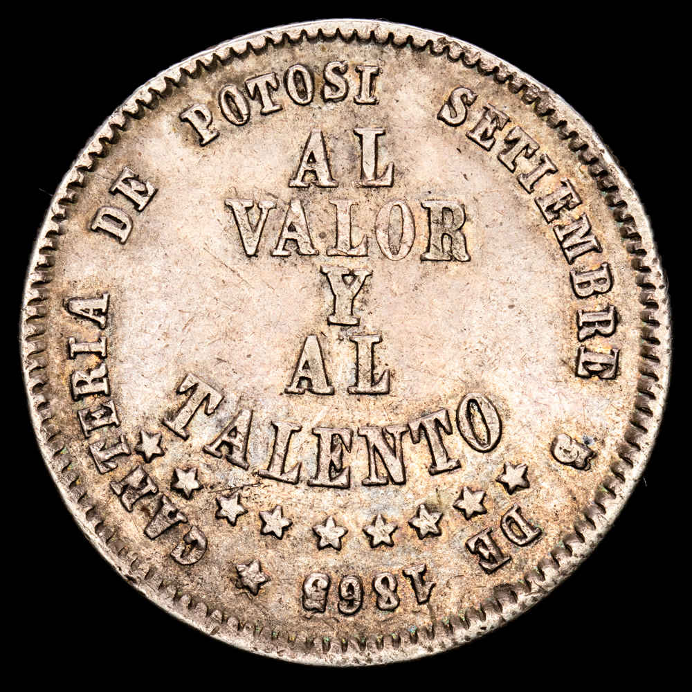 Numismática Barcala > Productos > Monedas Mundiales > America Sur > Bolivia > Bolivia. 1/2 Melgarejo. (9,52 g.). Potosí. 1865. KM-145.2. MBC+.