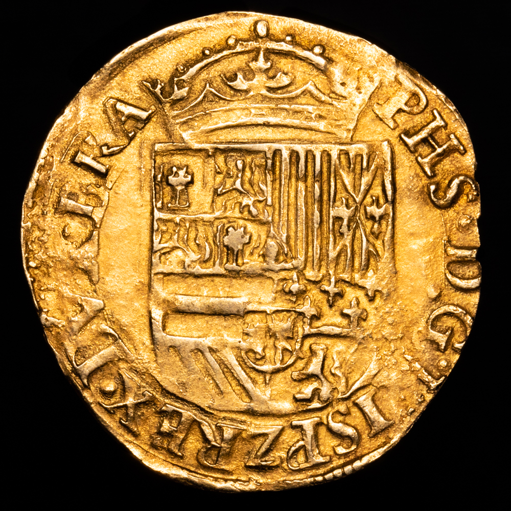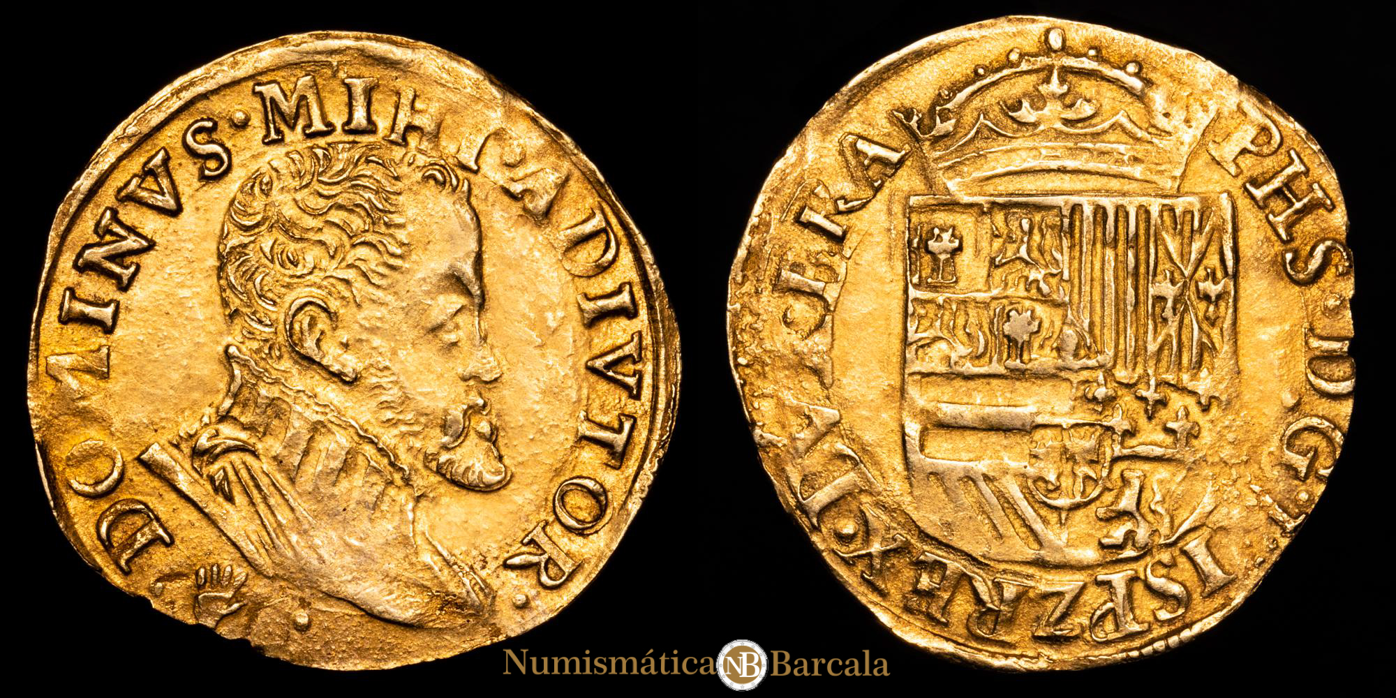 Numismática Barcala > Productos > Monedas Mundiales > Europa > Holanda > Brabante – Felipe II. 1/2 Real de oro. (3,41 g.). Amberes. S/F. VIT-1383. EBC-. Escasa. Marca de ceca en anverso.