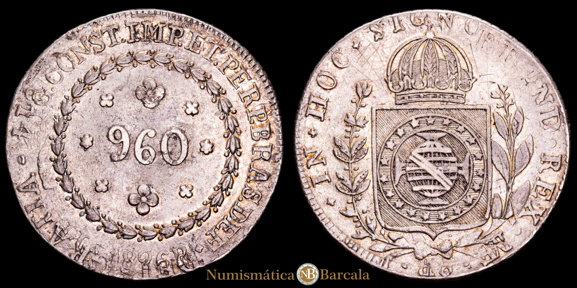Numismática Barcala > Productos > Monedas Mundiales > America Sur > Brasil > Brasil. 960 Reis. (27,37 g.). Rio. 1826. KM-368.1. MBC+. Acuñada sobre un 8 Reales 1814 Lima J·P