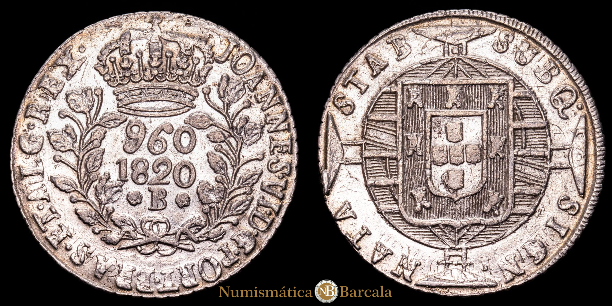 Joannes VI. 960 Reis. (26,63 g.). Bahia. 1820. KM-307.3. EBC+. Acuñada sobre un 8 Reales de Carlos III – 177(3? ).