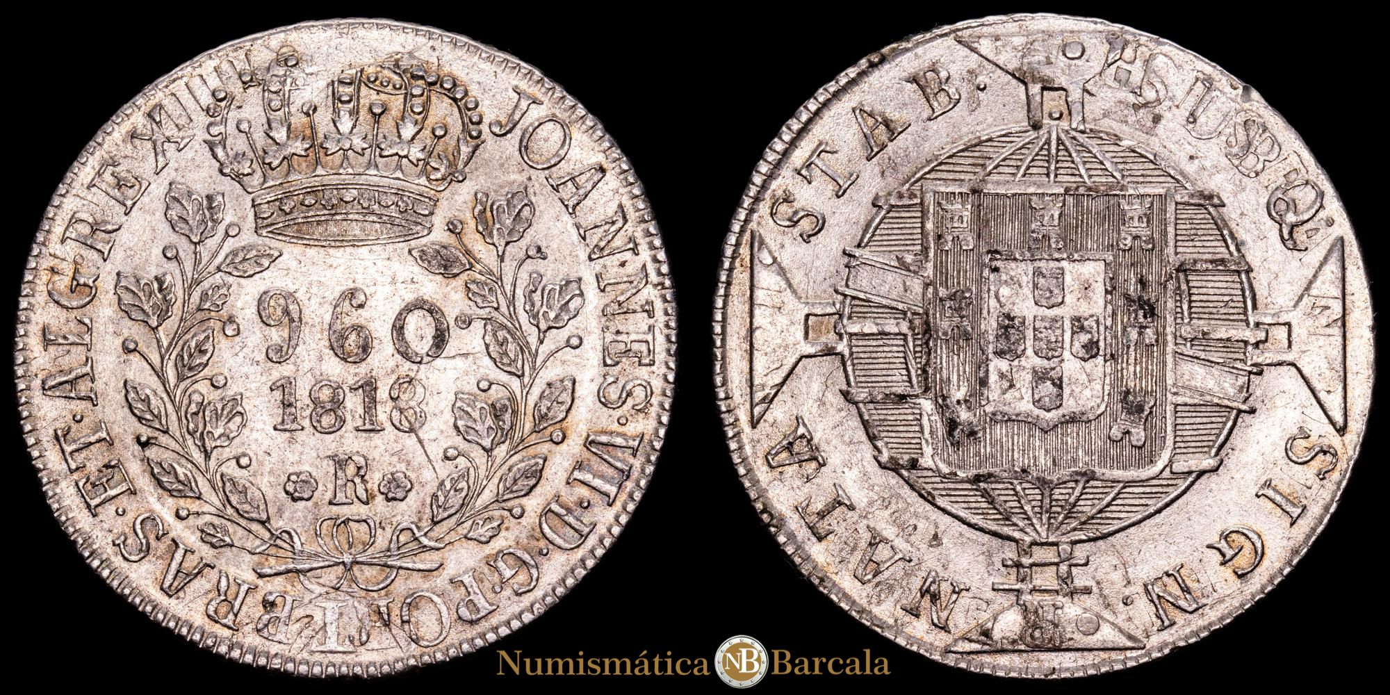 Numismática Barcala > Productos > Monedas Mundiales > America Sur > Brasil > Brasil – Joannes VI. 960 Reis. (27,16 g.). Rio. 1818. KM-307.3. EBC-. Acuñada sobre un 8 reales de Carlos IIII