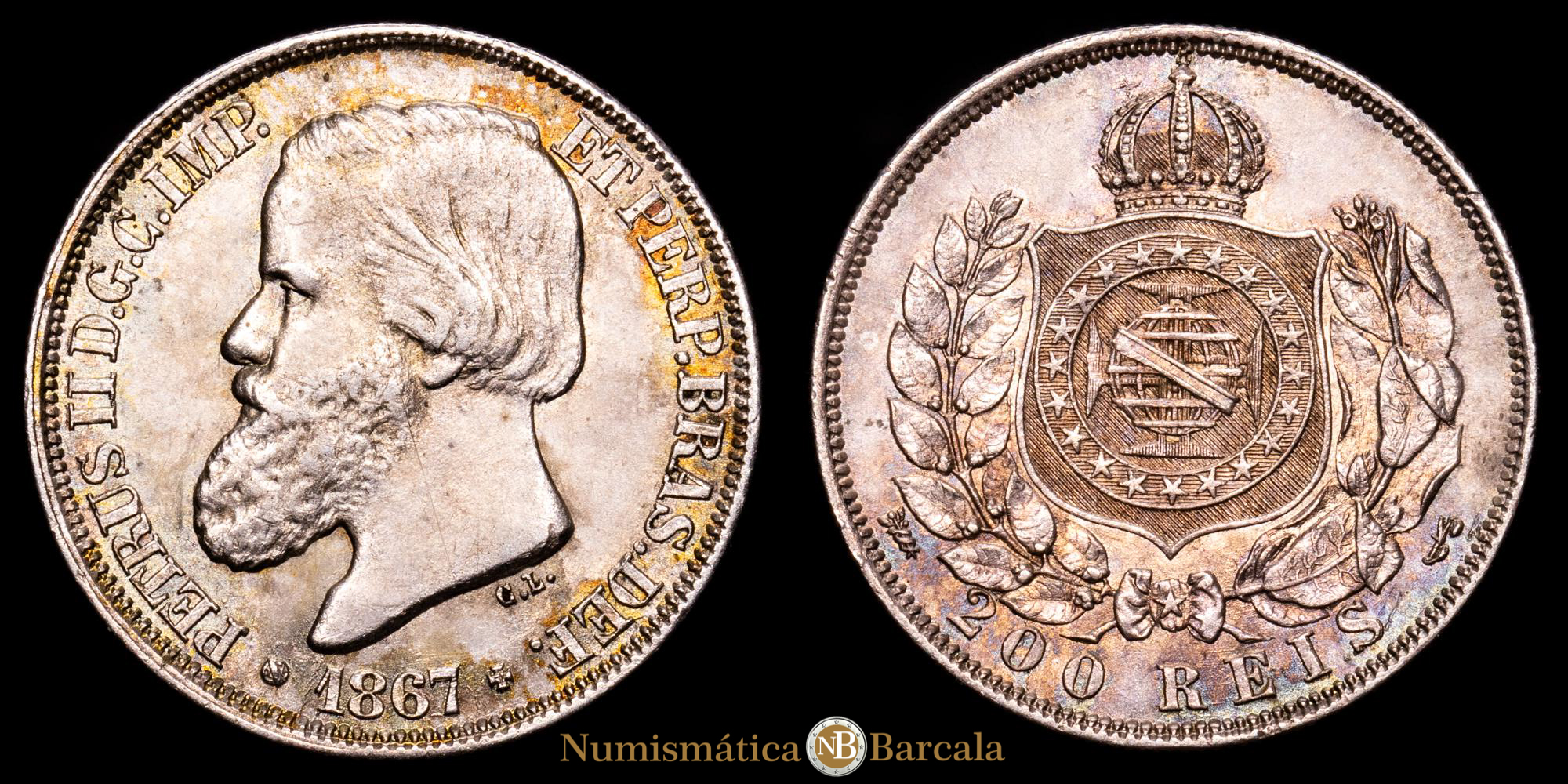 Brasil – Pedro II. 200 Reis. (2,48 g.). Brasil. 1867. KM-471. SC-.