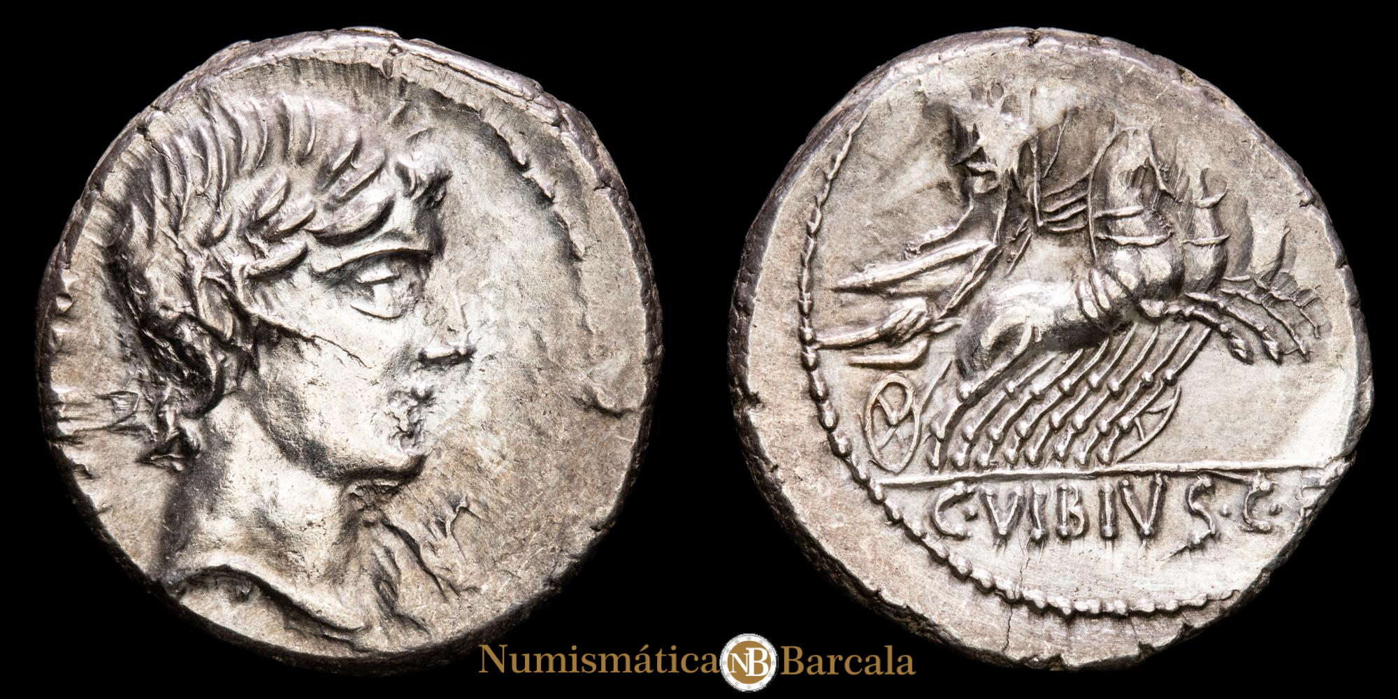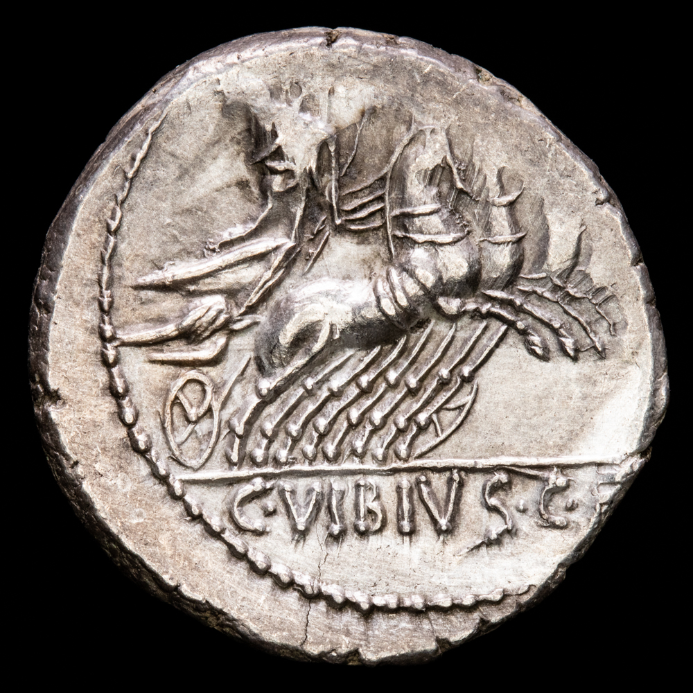 Numismática Barcala > Productos > Romanas > REPÚBLICA > C. Vibius. Denario de plata (3,80 g.). Roma, 90 a.C. Craw-252/5b. VF+