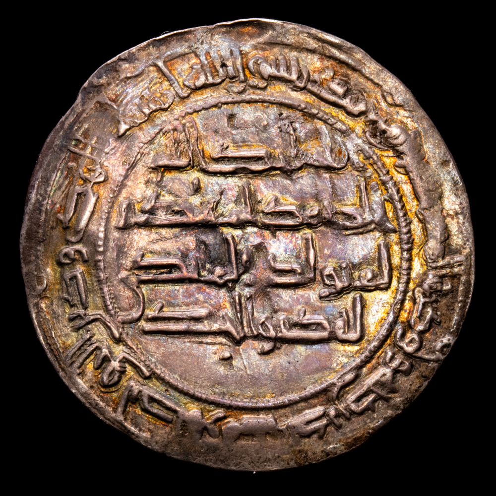 Emirato de Córdoba – abd al-Rahman I. Dirham. ( 2,72g.). al-Ándalus. 165 H (781 d.C.). Vives 63. XF. Preciosa tonalidad. Escasa.