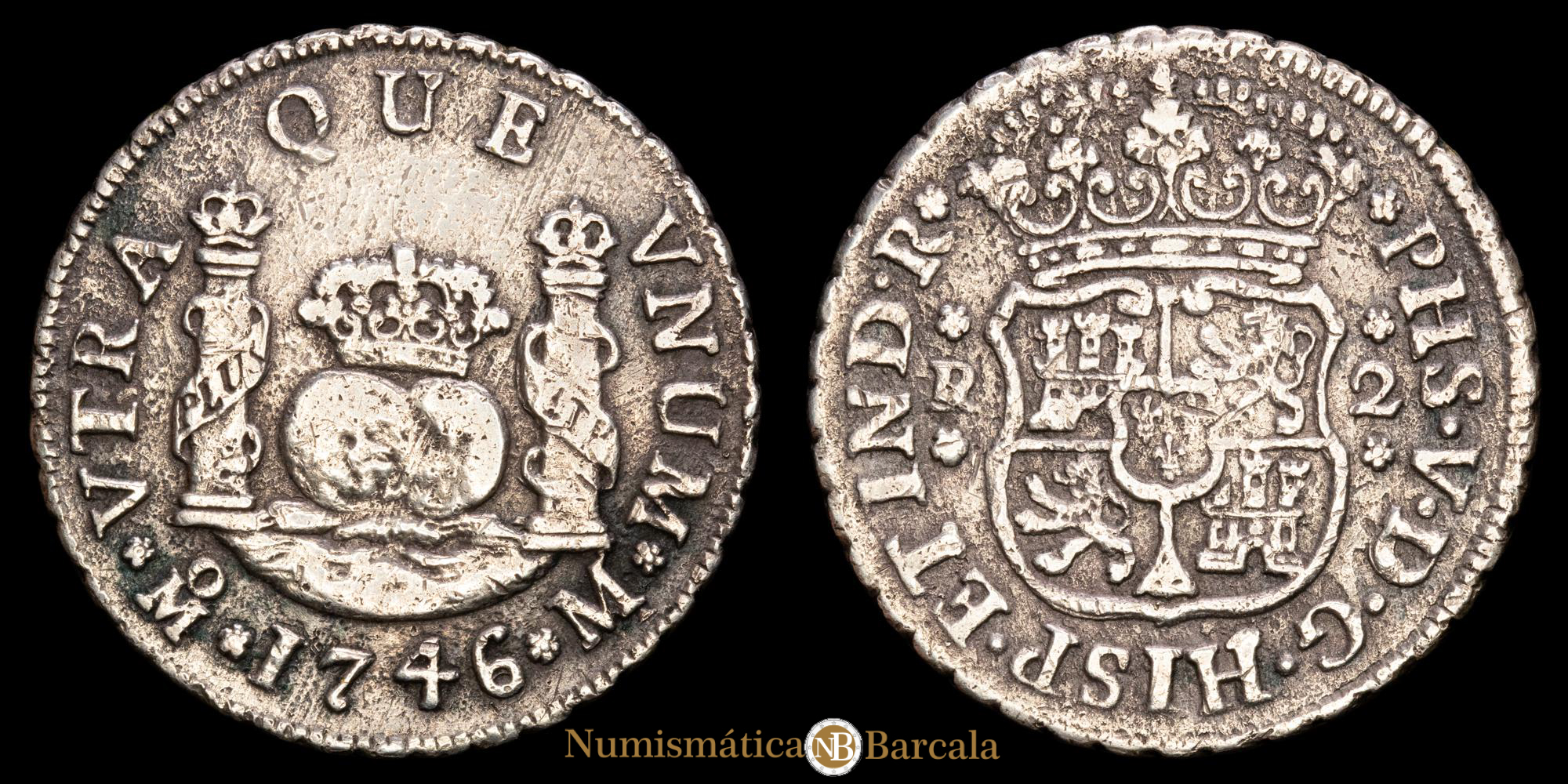 Numismática Barcala > Productos > Monarquia Española > Borbones > 1700-1746 Felipe V > Felipe V. 2 Reales. (6,31g.). México. 1746. Ensayador M. CA-814. MBC+.