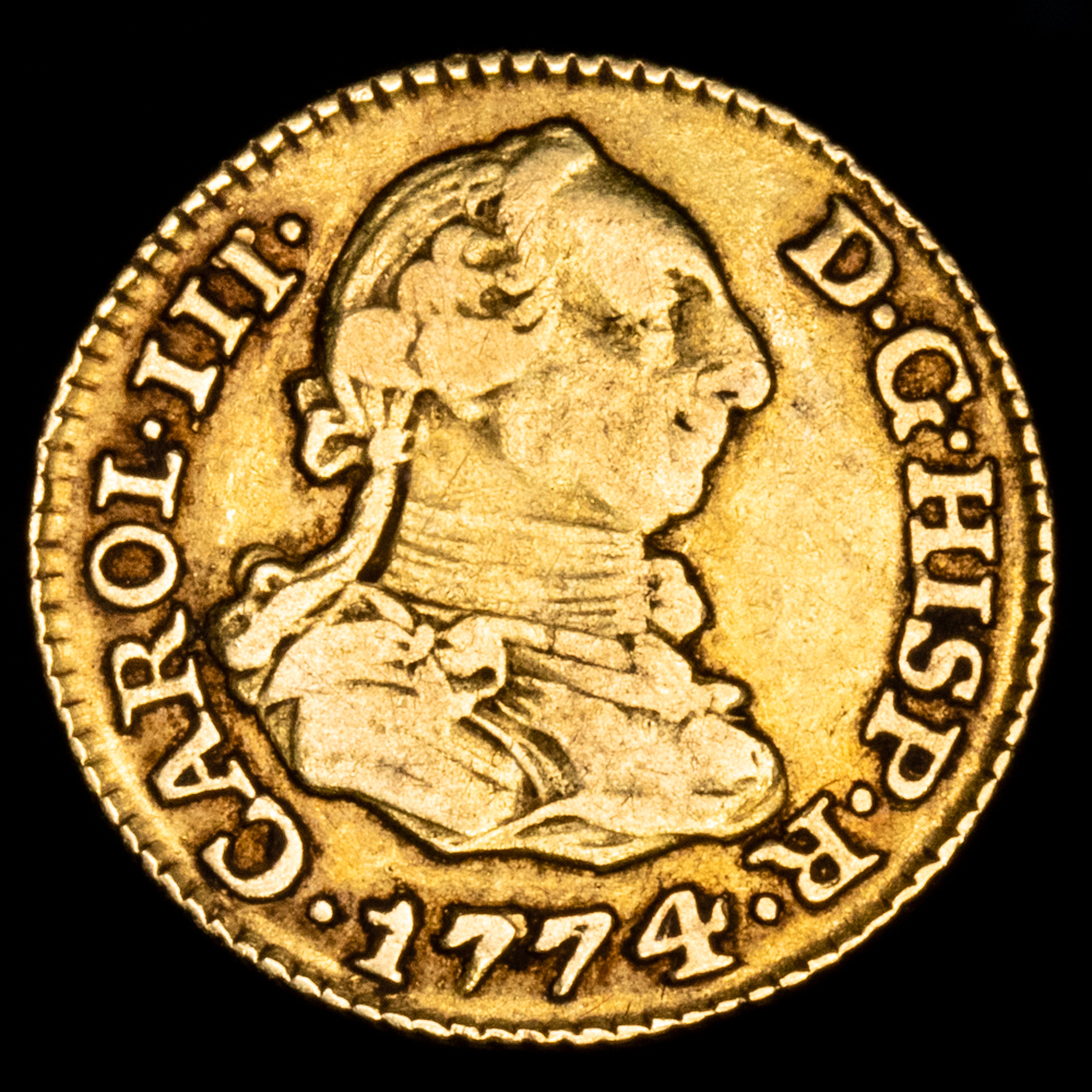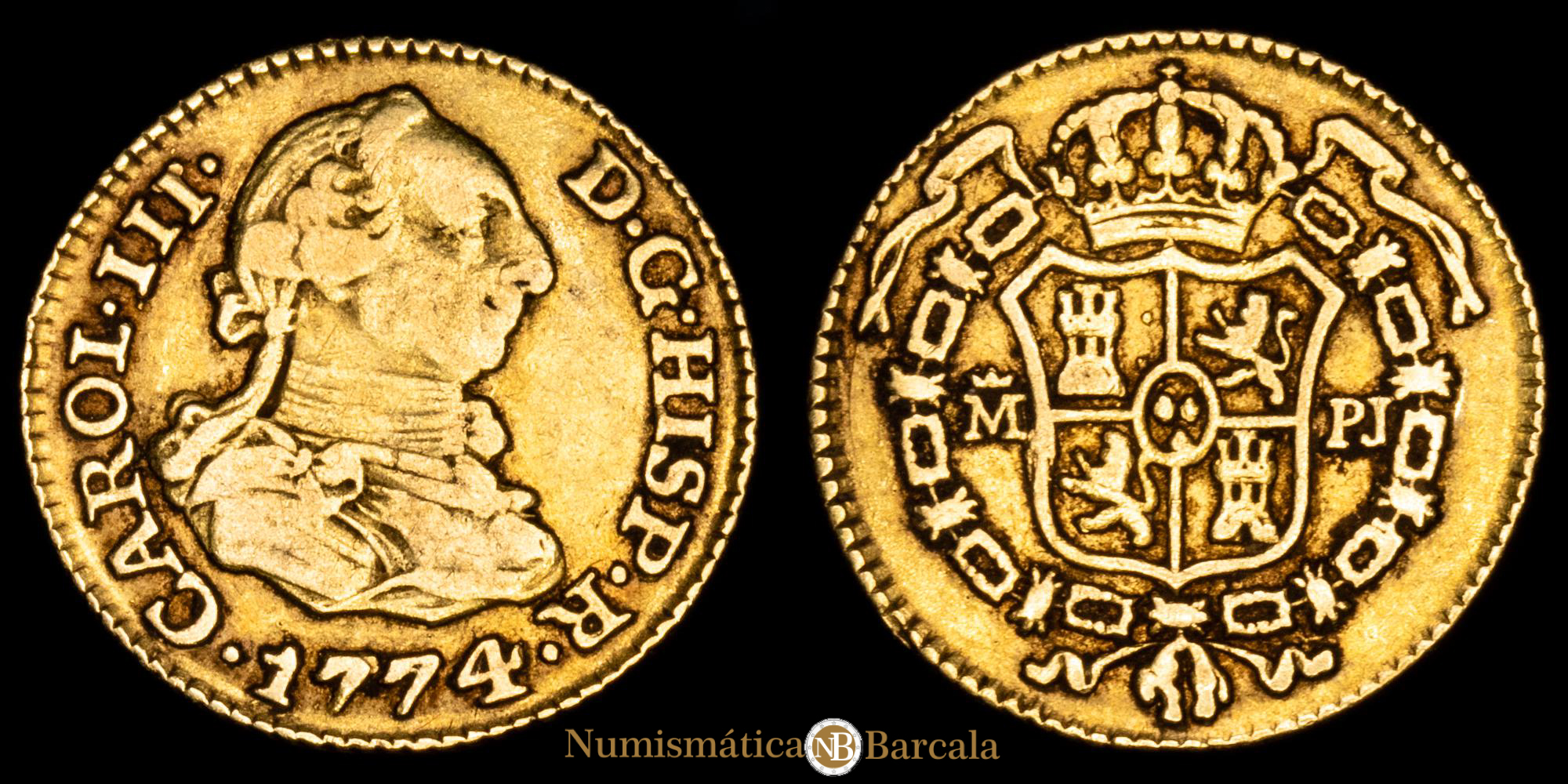 Numismática Barcala > Productos > Monarquia Española > Borbones > 1759-1788 Carlos III > Carlos III. 1/2 Escudo. (1,75g.). Madrid. 1774. Ensayador P·J. CAL-1260. MBC+.