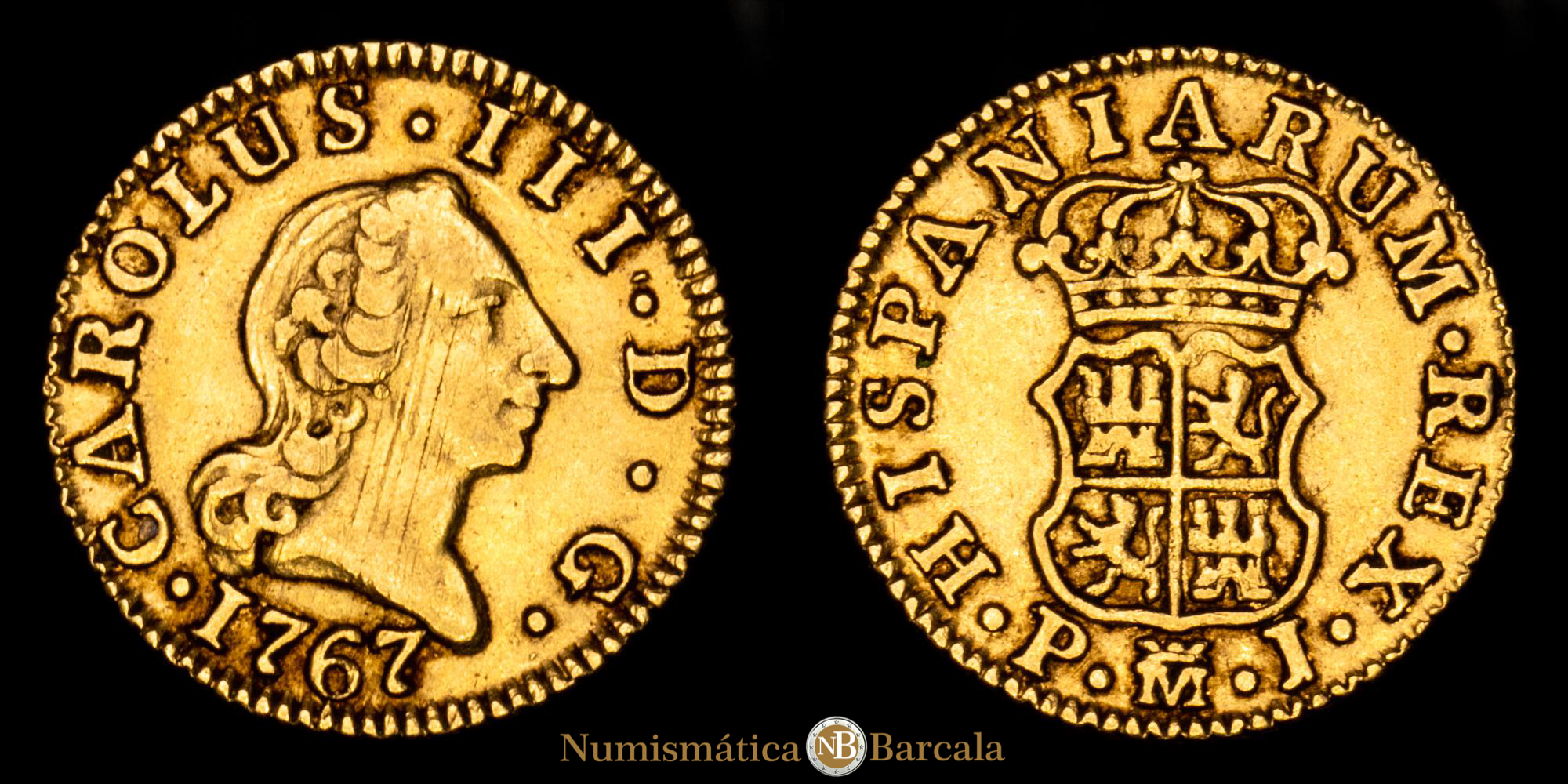 Carlos III. 1/2 Escudo. (1,8 g.). Madrid. 1767. Ensayador P·J. Aureo y Calico-1251. MBC+.