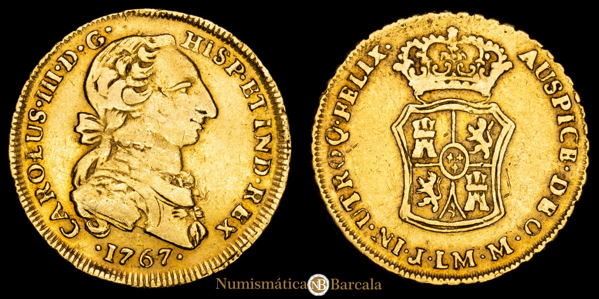 Carlos III. 2 Escudos. (6,69g.). Lima. 1767. Ensayador J·M. AC-1517. MBC. ¡Muy raro!