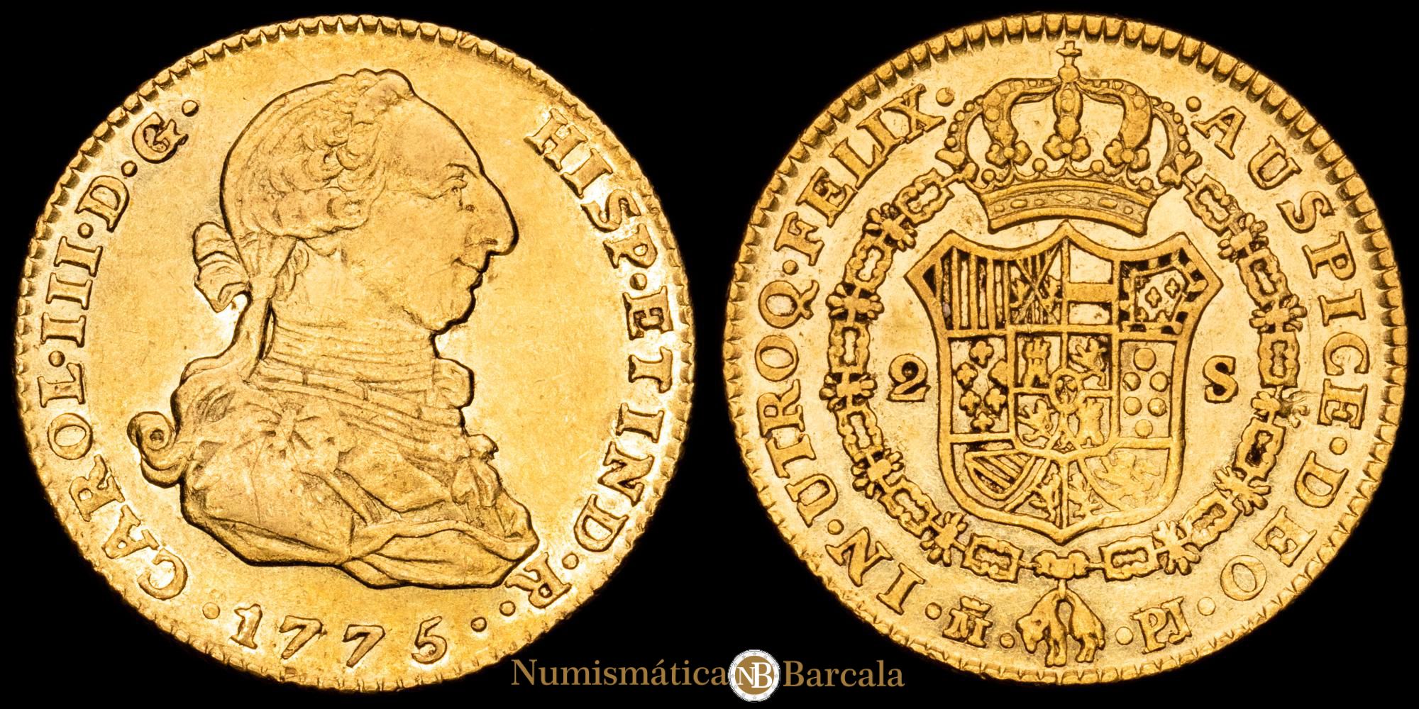 Carlos III. 2 Escudos. (6,7 g.). Madrid. 1775. Ensayador P·J. AC-1549. EBC. Restos de brillo original