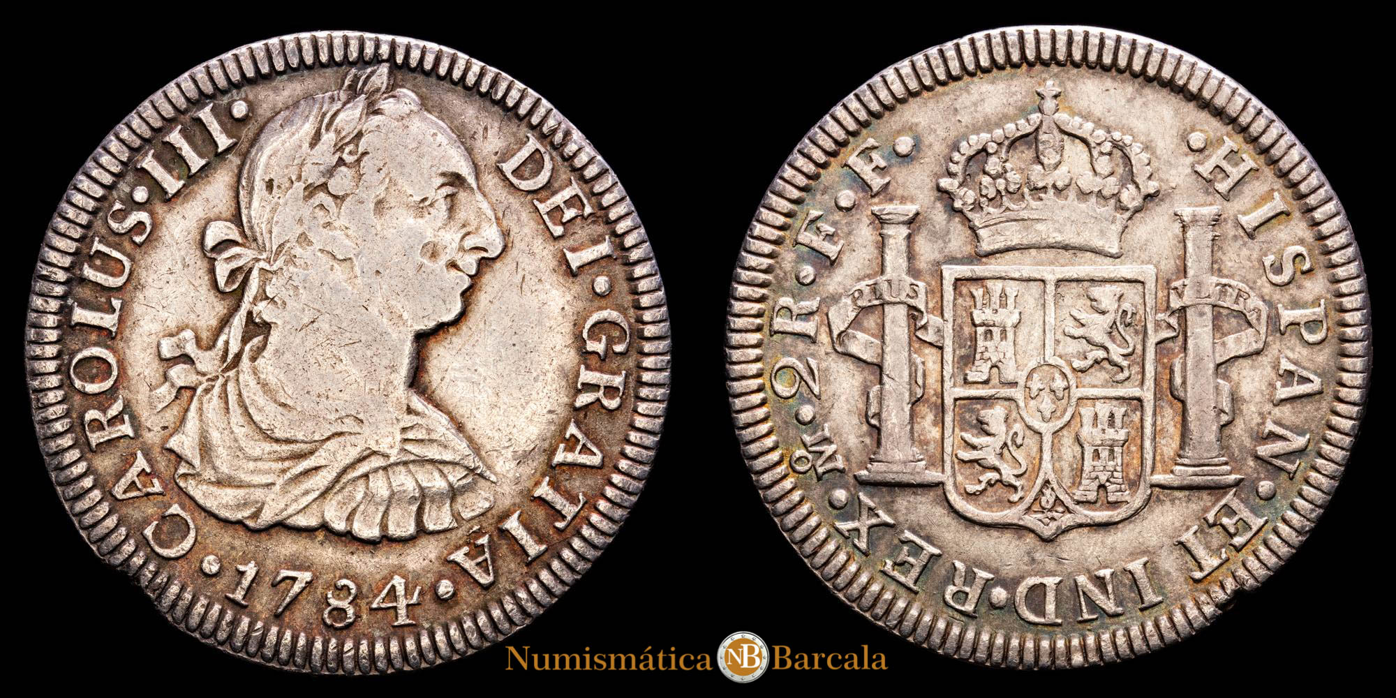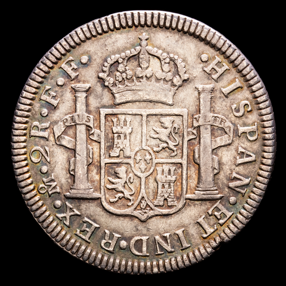Carlos III. 2 Reales. (6,52 g.). México. 1784. Ensayador F·F. Aureo y Calicó – 674. MBC/MBC+. Bonito color.