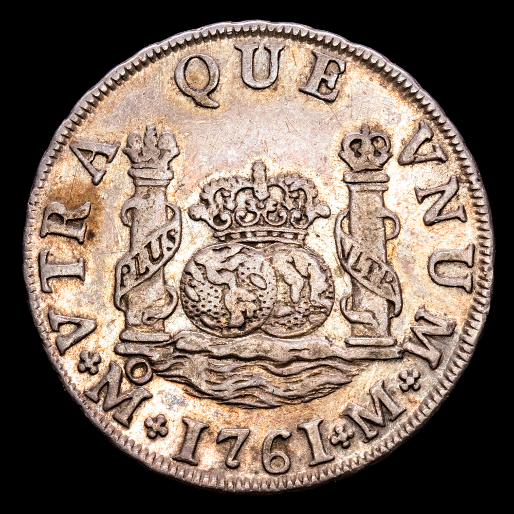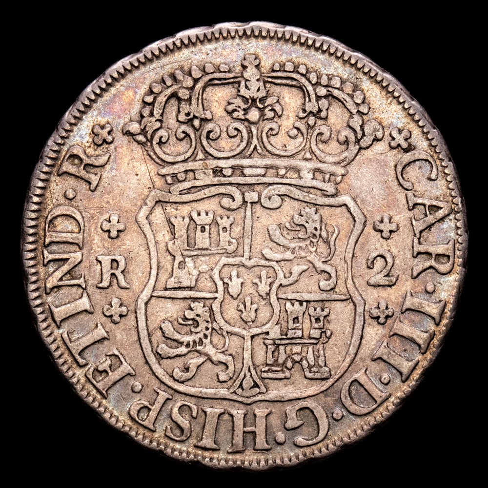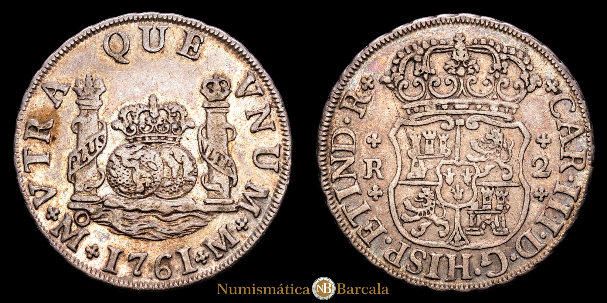 Numismática Barcala > Productos > Monarquia Española > Borbones > 1759-1788 Carlos III > Carlos III. 2 Reales. (6,72 g.). México. 1761. Ensayador M. Aureo y Calicó-643. EBC-. Bonita pátina iridiscente